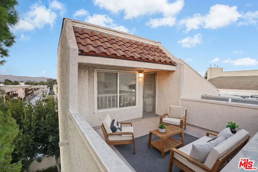 A rare offering of penthouse level luxury in the heart of Encino, this stunning two-story residence delivers elevated design on a dramatic scale, with an effortless lifestyle synonymous with premier Southern California living. Set within a private, gated community, the home rises above it all with soaring vaulted ceilings, vast, voluminous living spaces, and a light-filled floorplan designed for both refined comfort and stylish entertaining. Inside, the freshly painted residence with new installed flooring unfolds with an elegant sense of openness where gracious living and dining areas transition seamlessly from room to room. The living room with patio offers an inviting setting for relaxed gatherings while the separate family room provides additional space for casual leisure. A versatile loft overlooks the living area below, offering the perfect setting for a home office, creative studio, or private retreat. An adjoining balcony on one side and fantastic private rooftop deck on the other each offer boundless, breathtaking views of the mountains beyond and the city below. The primary suite is a sanctuary of comfort complete with its own fireplace, generous walk-in closet, and spa-like bath. The crisp bright kitchen offers ample cabinetry and conveniently adjoins the dining room. Beyond the residence, the community amenities further the lifestyle with two sparkling pools, a clubhouse with a sauna, pool table, card table and fireplace lounge, while the beautifully maintained grounds offer a resort-like environment. Additional conveniences include two side-by-side parking spaces and a dedicated private storage unit! Ideally located in the Nestle Charter School District and just moments from the chic shopping, dining, and entertainment along famed Ventura Boulevard. This exceptional penthouse residence offers the perfect blend of privacy, sophistication, and vibrant city living. Welcome!