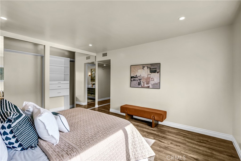 This is a stunning corner-unit Penthouse condo centrally located in Encino with a short walking distance to Ventura Blvd, Churches, Temples, restaurants and shopping areas. It features a rare 2 bed/2.5 baths with each bedroom having its own full bath. A separate powder room conveniently serves guests without bothering the 2 en-suites. Encompassing 1,558 of luxurious living SF, this pristine condo is bathed in gorgeous natural sunlight with beautiful views from its dual balconies off the living and dining room. It was completely remodeled throughout in 2017 including dual paned windows. A recent paint and upgrade refresh was done in January 2026. This top floor condo features a superior open and loft-like layout all on a single level. This gated complex includes an elevator, pool, jacuzzi, sauna room, bbq area, and covered parking. Take the 3D tour to discover the amazing features of this awesome condo.