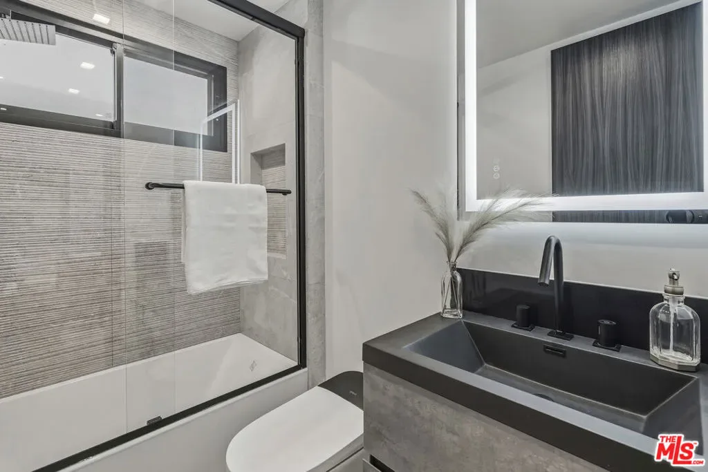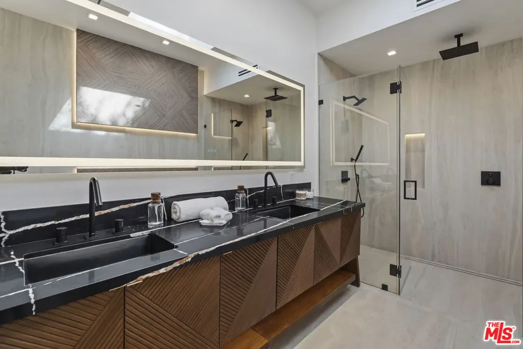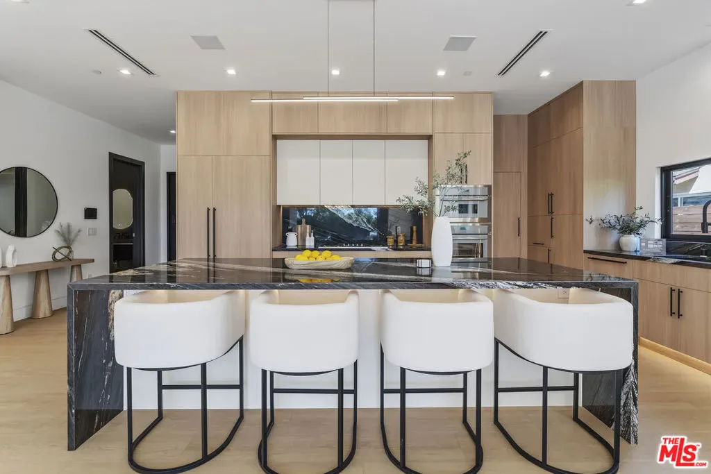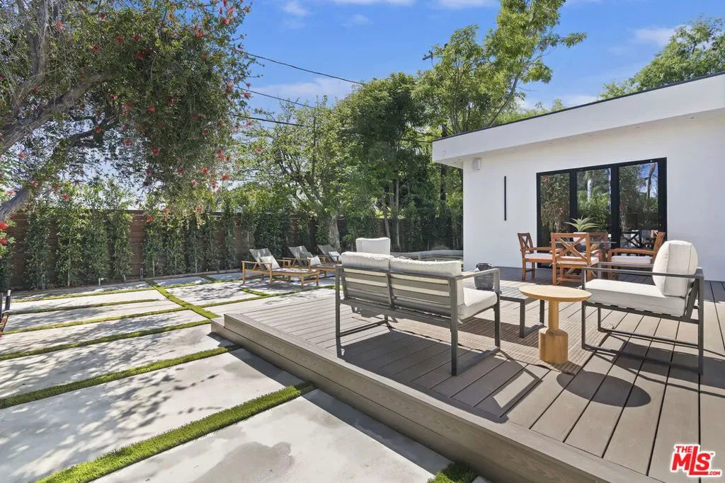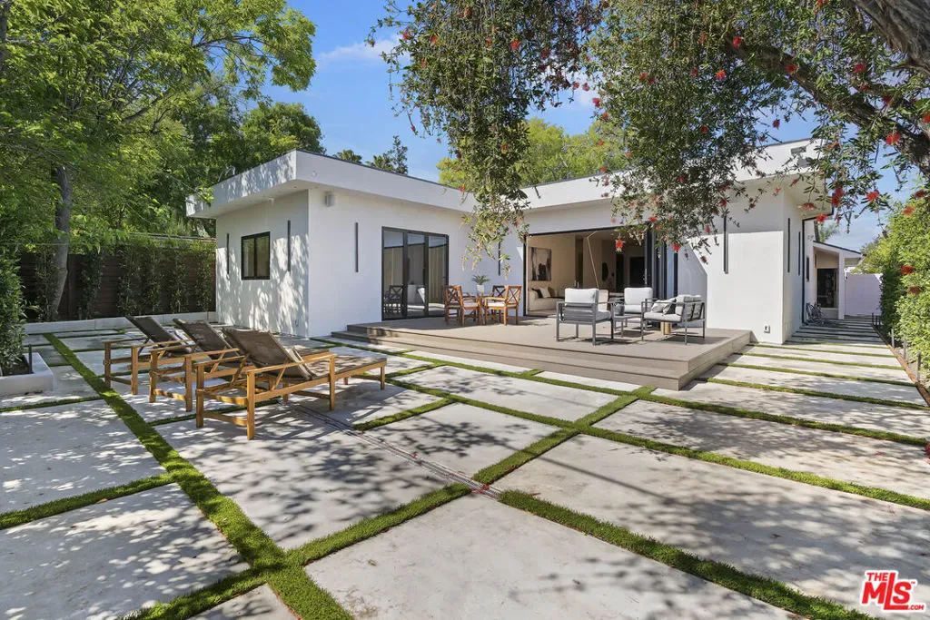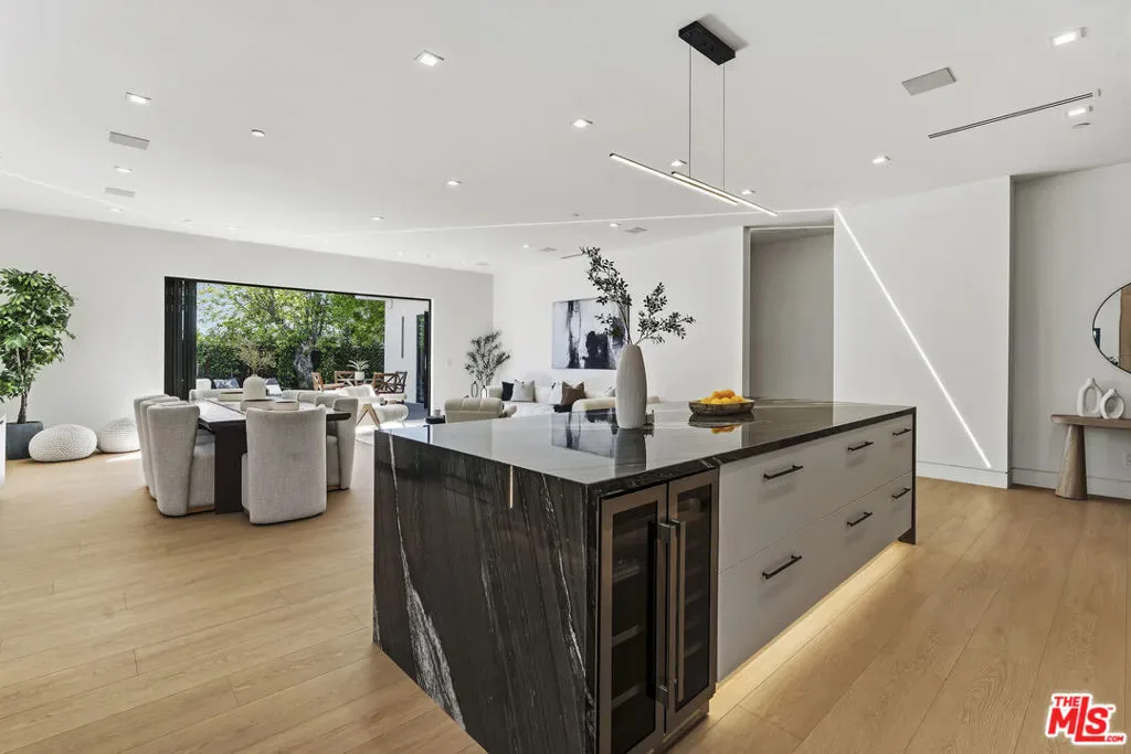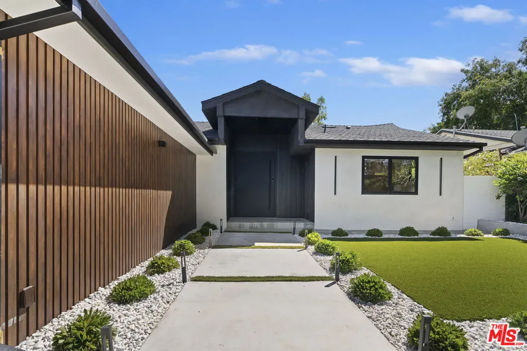 Welcome to this exquisite modern estate in the heart of Encino. This magnificent single-story residence offers 4 bedrooms and 4 bathrooms, thoughtfully designed with elegance, comfort, and seamless indoor-outdoor living in mind. As you step inside, you are greeted by an open-concept floor plan that flows effortlessly from the entryway to the backyard. The chef’s kitchen features custom cabinetry, premium Thermador appliances, a sleek modern island, and a spacious walk-in pantry with direct access to the garage perfect for everyday convenience. The living room is light-filled and inviting, highlighted by expansive sliding pocket doors that beautifully blur the line between indoor and outdoor living. Just off the entry, you’ll find a well-appointed in-law suite complete with its own bathroom and a custom-designed closet ideal for guests, extended family, or a private home office. The primary suite is a true retreat, featuring a luxurious spa-inspired bathroom, a thoughtfully designed walk-in closet, and sliding pocket doors that open to a serene outdoor deck, creating a peaceful and airy ambiance. Two additional bedrooms are conveniently located on the same wing, along with a dedicated laundry area and a stylish powder room. Beautifully landscaped front yard offers great curb appeal with clean modern lines, mature greenery, and a welcoming entry. The private backyard is designed for both relaxation and entertaining, featuring low-maintenance landscaping, ample space for outdoor dining and BBQ, and a serene setting ideal for gatherings or quiet evenings under the stars. Prime Encino location, centrally situated near parks, convenient freeway access, and an array of top dining and shopping options.
