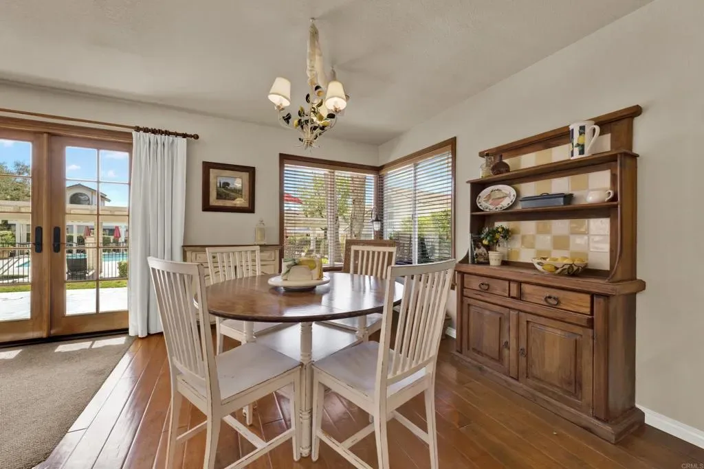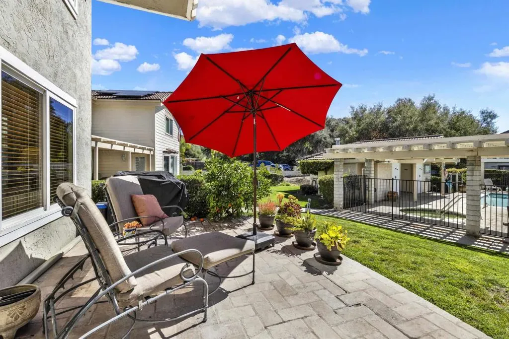 Lovely two-story, 3-bedroom, 3-bath home tucked inside the charming gated community of Oak Meadow Glen near Boulder Oaks Golf Course in Hidden Meadows. Light-filled, spacious rooms create an airy feel, while custom wood trim around the windows and French doors adds warmth and character throughout. Relax by the inviting fireplace or open the French doors for effortless indoor-outdoor living. Ideally located just steps from the pool and spa, this home offers the feel of a private backyard retreat without the upkeep. Enjoy the added value of PAID SOLAR, helping to keep energy costs down and efficiency up. With convenient access to I-15, commuting is easy — yet you’ll still enjoy the peaceful, laid-back atmosphere Hidden Meadows is known for. Detached ownership in a well-managed community means you have your own private lot, with common area maintenance included for added ease. Shopping and a couple of delicious dining options are literally right around the corner = the perfect blend of comfort, convenience, and lifestyle.