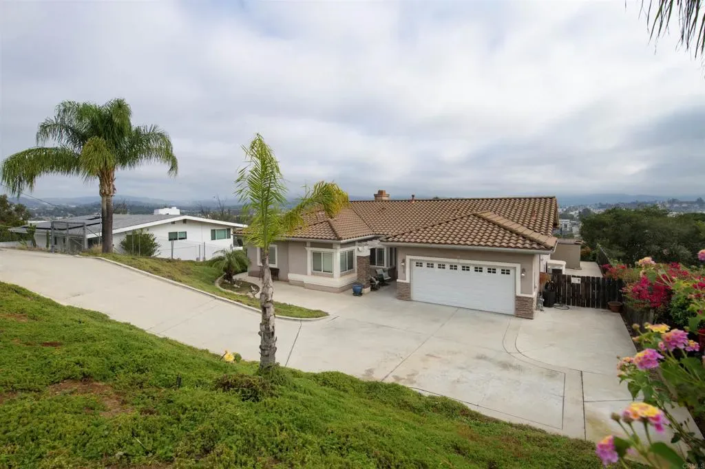 Custom single-story estate showcasing sweeping, panoramic views of the city lights of Escondido from nearly every room. Formerly a model home, this residence is thoughtfully appointed with an impressive array of high-end finishes, including elegant travertine flooring, designer tile baths, granite countertops, stainless steel appliances, recessed lighting, soaring 10-foot ceilings, and wide hallways that create an open, airy feel throughout. Designed with both comfort and functionality in mind, the flowing floor plan offers the ideal balance of space and privacy. The primary suite is privately situated away from the secondary bedrooms, creating a serene retreat. A versatile fourth bedroom has been opened near the main entry, providing the perfect space for a home office, library, or additional sitting room. Nestled on a quiet stretch of Upas, this home offers a rare combination of seclusion and convenience. Enjoy close proximity to the charm of Grand Avenue, performances at the renowned California Center for the Arts, Escondido, and easy access to Interstate 15 for commuting. With its exceptional location, thoughtful layout, and captivating views, this home truly offers the best of Escondido living.