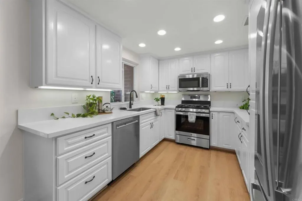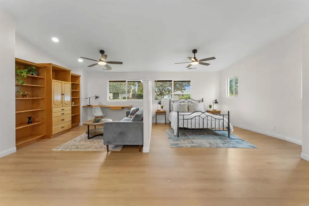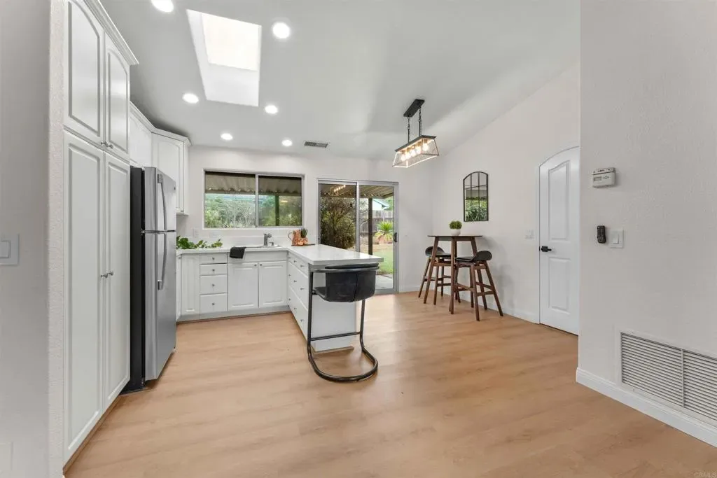 Welcome to this beautifully updated Escondido home with a permitted ADU and solar, offering flexibility, comfort, and income potential in North County San Diego. Situated on a spacious 0.25-acre lot, this move-in ready property features 4 bedrooms, 3.5 bathrooms, and approximately 2,418 sq ft of living space . The home has been refreshed with new interior paint and updated flooring throughout, along with modernized kitchen and bathrooms. The attached permitted ADU includes a full kitchen, living area, bedroom space, and full bathroom, ideal for multi-generational living or rental income, with separate access. Enjoy the outdoor space with flat usable yard, mature fruit trees, and two semi-covered patios, perfect for entertaining. Additional features include RV parking, 2-car garage, updated windows, and dual HVAC systems for added efficiency and comfort. Conveniently located just minutes from the I-15 and Hwy 78, with easy access to shopping, dining, and more. A great opportunity for those seeking a move-in ready home with versatility and income potential.