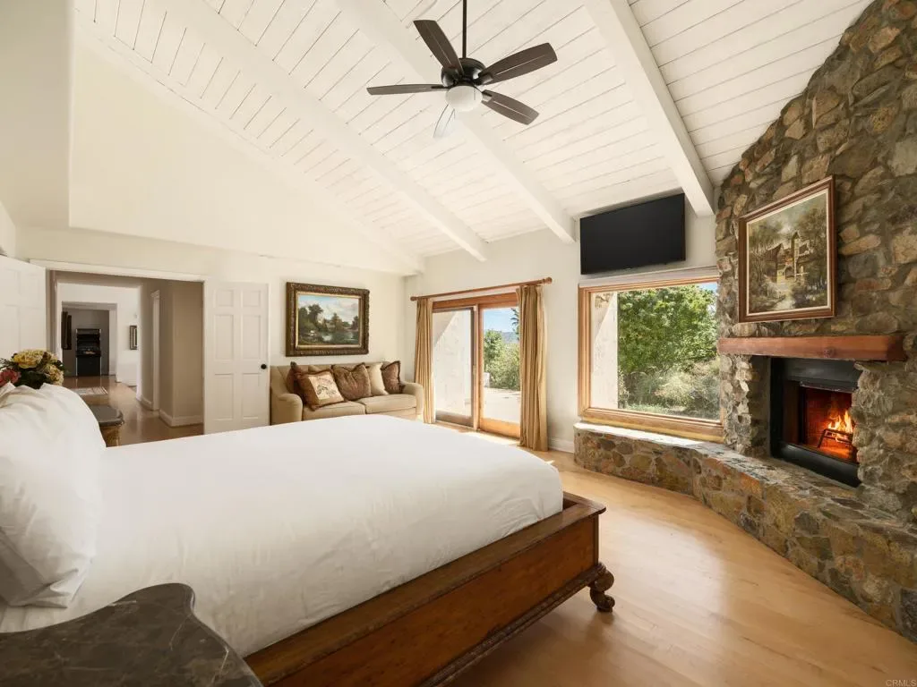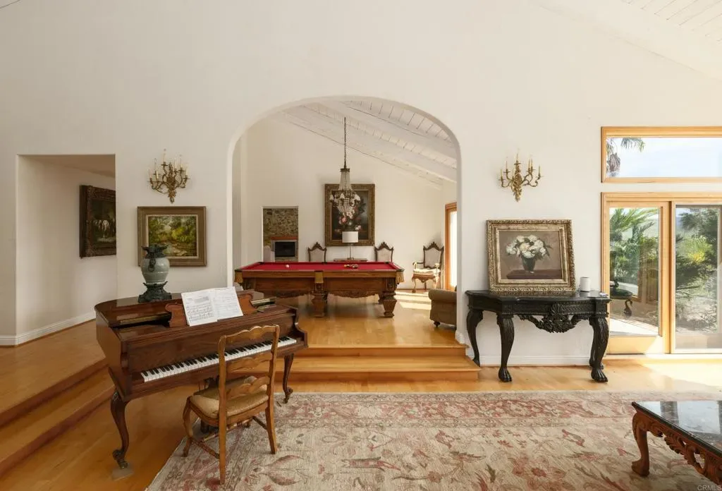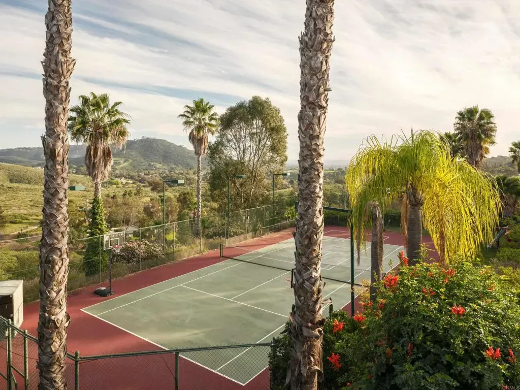 Set atop a quiet hillside in the Elfin Forest community of San Diego, this gated California Mediterranean style estate is situated on 2.5 gently sloped acres and enjoys broad views overlooking miles of protected coastal chaparral and the trail system of Sage Hill Nature Reserve. This elevated outlook spans a wide swath of San Diego, with views as far as the La Jolla skyline. Such a setting provides the ultimate feeling of privacy and serenity with the additional benefit of limited neighboring development. The estate includes a heated swimming pool, a lighted tennis court, expansive lawn areas, a playground structure and mature landscaping throughout the grounds. The property also features a variety of established citrus trees. With its acreage, layout and access to a vast system of trails, the estate also offers ideal equestrian opportunity. Despite the feeling of remote, natural privacy, the estate is conveniently located approximately 8 minutes from the shops, dining and services of the vibrant San Elijo Village and within a lovely winding drive to some of the very best beaches in Southern California in North County San Diego. The property is also located within the attendance area of the R. Roger Rowe K-8 public school district of Rancho Santa Fe with designated access to a private gated back road directly to the Village of Rancho Santa Fe. Fortuna Del Norte presents a rare opportunity for a private gated estate offering acreage, panoramic views, resort-style living in one of North County’s most majestic and sought after hillside communities of the Enchanted Elfin Forest.