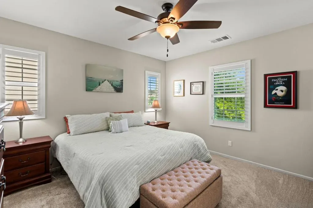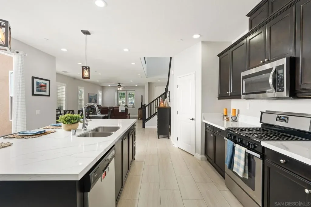 Welcome home to this beautifully maintained 3-bedroom, 2.5-bath residence in the charming, sought-after neighborhood of Harmony Grove Village. Boasting 1,873 square feet of thoughtfully designed living space, this home offers the perfect blend of style and functionality. The open-concept great room creates a bright and inviting atmosphere, seamlessly connecting the living area to the gourmet kitchen. The kitchen features a large central island—ideal for casual meals and entertaining—along with a generous walk-in pantry for ample storage. Just off the main living area, step outside to your private patio complete with a gas fire pit, perfect for relaxing evenings under the stars or hosting unforgettable gatherings with friends and family. Upstairs, you’ll find all three spacious bedrooms, providing privacy and separation from the main living areas. The primary suite offers a peaceful retreat, while the additional bedrooms are perfect for family, guests, or a home office. Additional highlights include owned solar panels, which help keep energy costs low and support a sustainable lifestyle. Located in the highly desirable Harmony Grove Village community, this home is surrounded by beautiful parks, walking trails, top-rated schools, and convenient access to shopping and dining. Enjoy the peaceful suburban feel while being close to everything you need. This community has become well known for the festive Halloween & holiday decor. This turnkey home is ready for you to move in and start making memories. Don’t miss your opportunity to call this gem yours!
