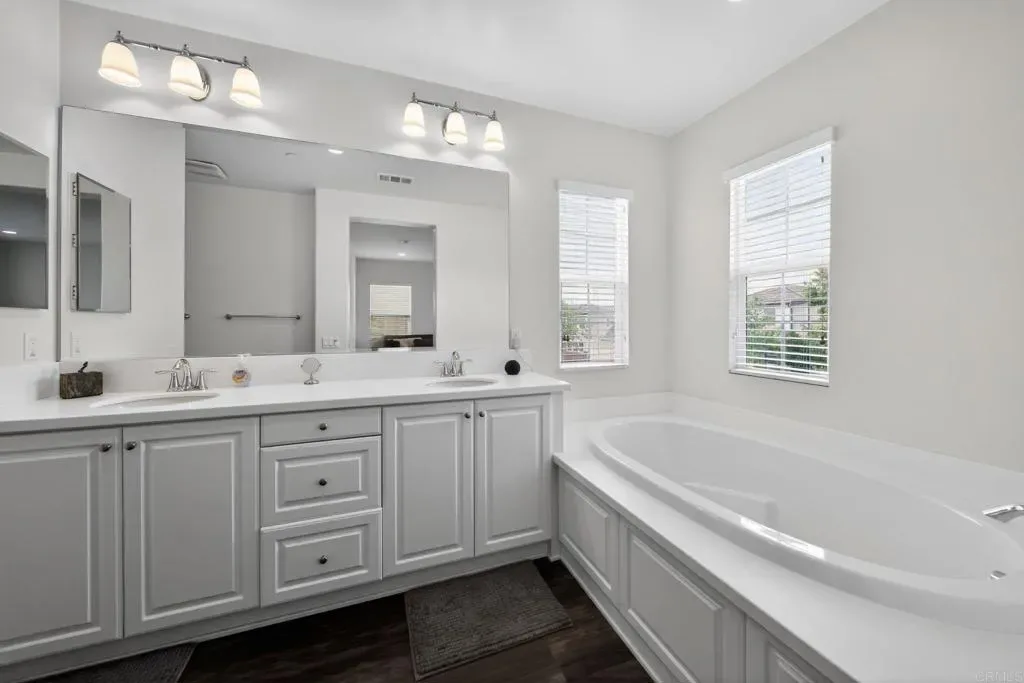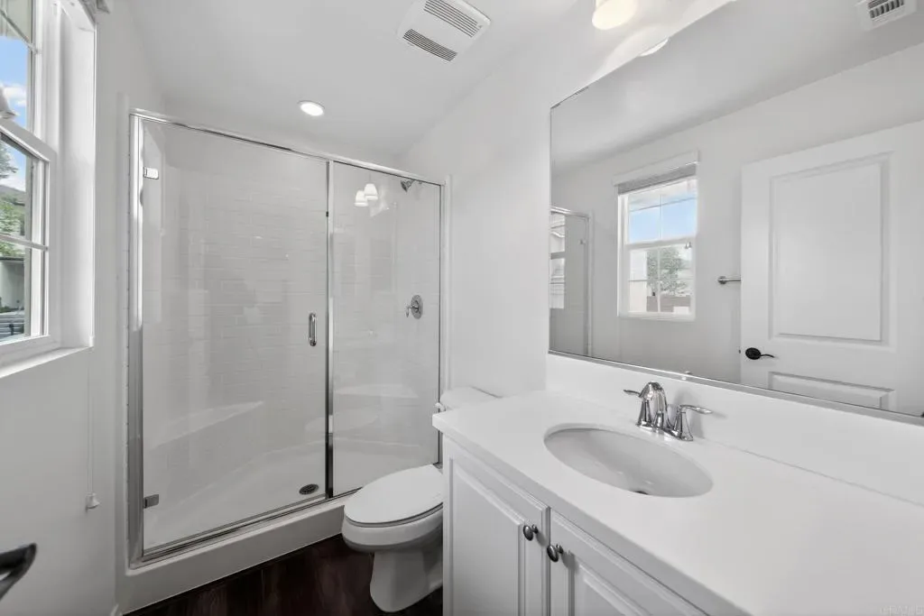 Welcome to Harmony Grove Village, where comfort, style, and community come together. Built in 2017 and offered for the first time, this beautifully maintained two-story home is lightly lived in and truly move-in ready. Situated on a premium corner lot, you’ll enjoy added privacy along with close proximity to Village Park is just a short stroll away. Designed with both function and modern living in mind, the home features a formal entry that opens into an inviting living space. The chef’s kitchen is a standout, showcasing a granite island with seating for three, upgraded appliances, and thoughtful builder enhancements throughout. Step outside to an oversized, low maintenance backyard complete with a spacious patio, built-in planter beds, and drought-tolerant landscaping which is perfect for relaxing or entertaining year-round. The flexible floor plan includes a convenient downstairs bedroom and full bath, ideal for guests or multigenerational living. Upstairs, the primary suite is positioned at the front of the home, enjoying northeast exposure for natural light and energy efficiency. The en-suite bath offers dual sinks, an expansive vanity, soaking tub, separate shower, and a generous walk-in closet. A versatile loft separates the primary suite from two additional bedrooms, creating a functional layout with added privacy. The secondary bath is thoughtfully designed with a separate sink area and water closet, and the upstairs laundry room adds everyday convenience. Residents of Harmony Grove Village enjoy scenic walking trails, sidewalks, and access to two community parks. Ideally located near shopping, dining, and easy freeway access to both I-15 and Hwy 78, this home offers the perfect balance of tranquility and connectivity. Don’t miss this rare opportunity to own in one of Escondido’s most desirable communities.