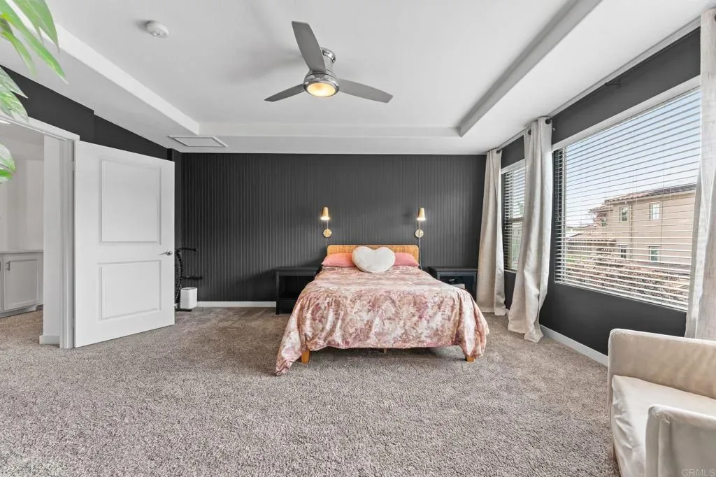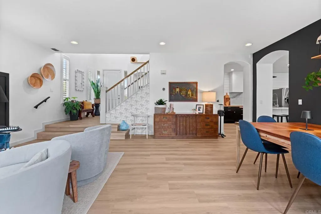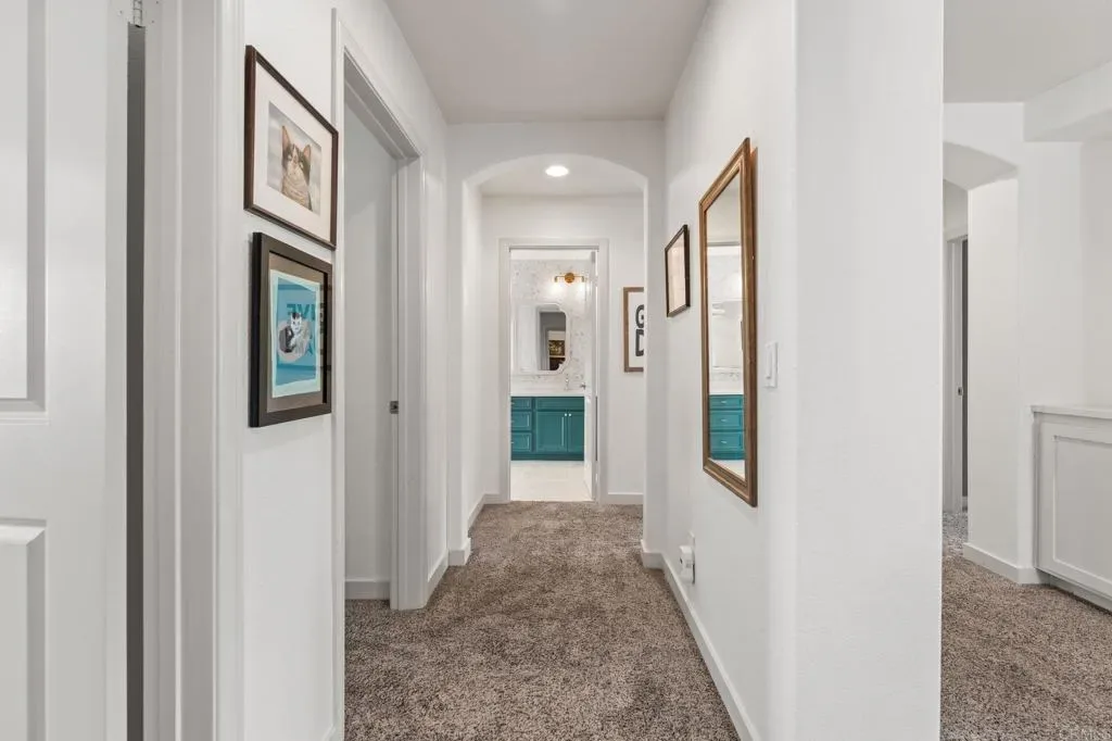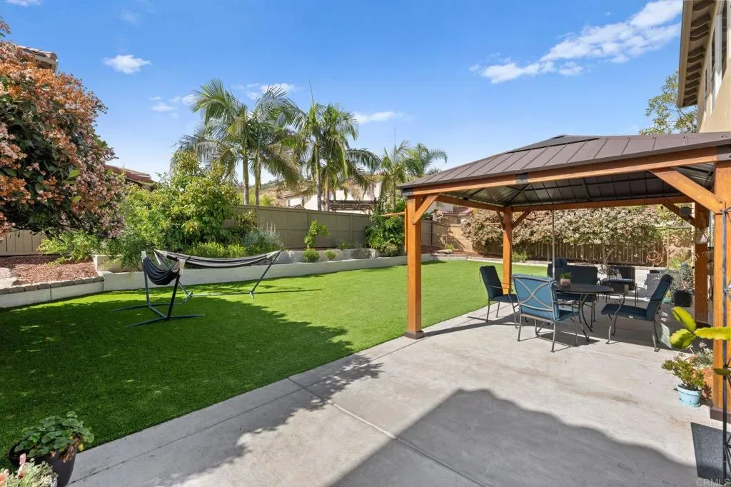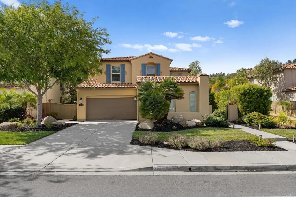Owned Solar. Sauna. 3-Car Garage. Remodeled Kitchen. Welcome to Pummelo. This is not a flip. This is a family home that was loved, upgraded, and done right. Tucked in a quiet street in northeast Escondido, 2642 Pummelo Ct offers 2,889 sq ft of thoughtfully updated living space on a 7,779 sq ft lot with five bedrooms, three full bathrooms, and a half bath. From the moment you walk in, the wide-plank flooring, soaring ceilings, and open layout tell you this one is different. The remodeled kitchen is the kind you will remember. Sleek black cabinetry, a statement large island with quartz countertops, and stainless appliances. It opens directly into the living and dining areas so no one is ever out of the conversation. Five bedrooms means room for everyone. Home office, guest suite, playroom, you name it. The primary suite is spacious, the bath is updated with teal cabinetry that makes a statement, and yes, there is a sauna in the primary closet. Negotiable, but it might just be the reason you never leave. Whole house water purification system. Low-maintenance turf out back. Owned solar that has covered the monthly electric bill for the current family. Buyer to verify based on individual usage. No lease to assume. No payment to absorb. Three car garage. Low HOA. All appliances included.