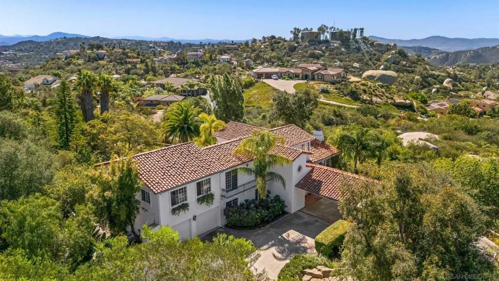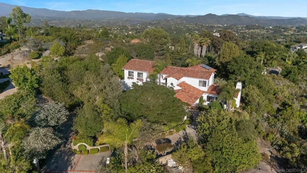 Tucked within the private guard-gated community of Rimrock Estates, 28889 Anderson Court offers a rare opportunity to experience one of North County’s best-kept secrets. Set among gorgeous custom estates on expansive parcels, this exclusive enclave is defined by vast panoramic vistas, ocean views, and exceptional privacy—a peaceful retreat where residents enjoy space, security, and a deep connection to nature. Often compared to Rancho Santa Fe for its estate-style living, Rimrock Estates offers a compelling alternative with remarkable value while maintaining the same sense of prestige, tranquility, and lifestyle appeal. Perched at approximately 1,750 feet above sea level, the property enjoys breathtaking south- and west-facing views, capturing golden sunsets, distant ocean horizons, and rolling mountain landscapes. The elevated setting creates a unique microclimate ideal for lush landscaping and offers endless possibilities for expanding the grounds. A long private driveway and classic porte-cochère arrival set the tone for the residence, where timeless Spanish Mission-inspired architecture blends seamlessly with the surrounding natural beauty. The home offers four bedrooms, including a spacious primary suite with sweeping views, and can easily live as a three-bedroom main residence with a 1,000-square-foot attached guest suite—perfect for multi-generational living, guests, or a private office or rental opportunity. The guest suite includes its own private entrance, bedroom, bathroom, office space, laundry hookups, and pre-installed plumbing and 220 electric for a futur