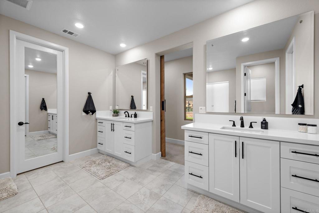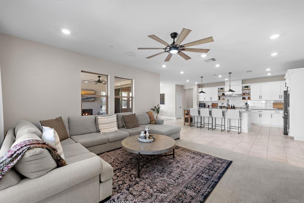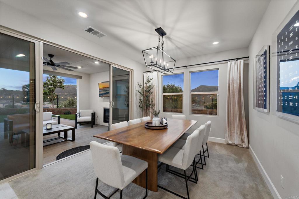 Perched on one of the most desirable premium lots in Harmony Grove Village, 2944 Gait Way offers a rare blend of privacy, luxury, and BREATHTAKING PANORAMIC VIEWS. Positioned within a quiet pod style setting on a circular court with no through traffic, this elevated residence captures sweeping vistas of rolling hills, valleys, and distant mountains from nearly every room, creating a stunning backdrop for daily living and unforgettable sunsets. Designed with versatile MULTIGENERATIONAL LIVING in mind, the thoughtfully crafted floor plan features a main level primary suite along with an additional ensuite ideal for extended family or guests, plus a dedicated office and generous upstairs loft providing flexible living spaces to suit a variety of needs. The sun filled open concept design is anchored by an expansive chef’s kitchen, smart appliances, dramatic quartz island that flows seamlessly into the great room and dining area, all oriented to maximize the home’s spectacular views. Walls of glass invite the outdoors in, while the professionally landscaped backyard with sleek view fencing offers a serene setting to relax or entertain against a panoramic natural backdrop. OWNED SOLAR, Tesla batteries enhances energy efficiency and long term savings, adding to the home’s exceptional value. Residents of Harmony Grove enjoy resort inspired amenities including a community pool, parks, playgrounds, and miles of scenic hiking and equestrian trails, with convenient access to shopping, dining, and top rated schools. This is an extraordinary opportunity to own a view property in North County’s most sought after communities.
