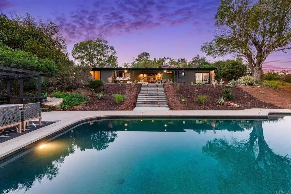 Stunningly remodeled Mid-Century Modern Horse Property! Tucked away in the tranquil hills of East Canyon in Escondido, this fully remodeled single-level home offers the ultimate harmony of style, space, and serenity. With 4-bedrooms, 3-bathrooms, spanning over 2,100 square feet, clean lines, open layout, and timeless design effortlessly embrace natural light and seamless indoor-outdoor living. It’s an entertainer’s paradise, featuring a chef’s kitchen that flows onto a covered patio, overlooking a sparkling pool with breathtaking valley and mountain views. Set on 2.18 acres of agriculturally zoned land, this property is a dream for equestrian and outdoor enthusiasts alike. It features two pastures—one with a covered shelter—and ample space to create more pastures, gardens, facilities, or even an ADU. The possibilities are endless for bringing your outdoor visions to life. Blending contemporary sophistication with the charm of countryside living, this home offers a one-of-a-kind escape. All nestled in a peaceful rural setting, yet just minutes from top-rated schools, the 15 freeway, and convenient shopping. It’s the perfect balance of privacy and accessibility—ready for you to make it your own.