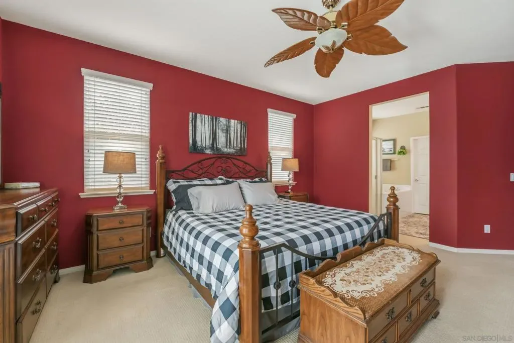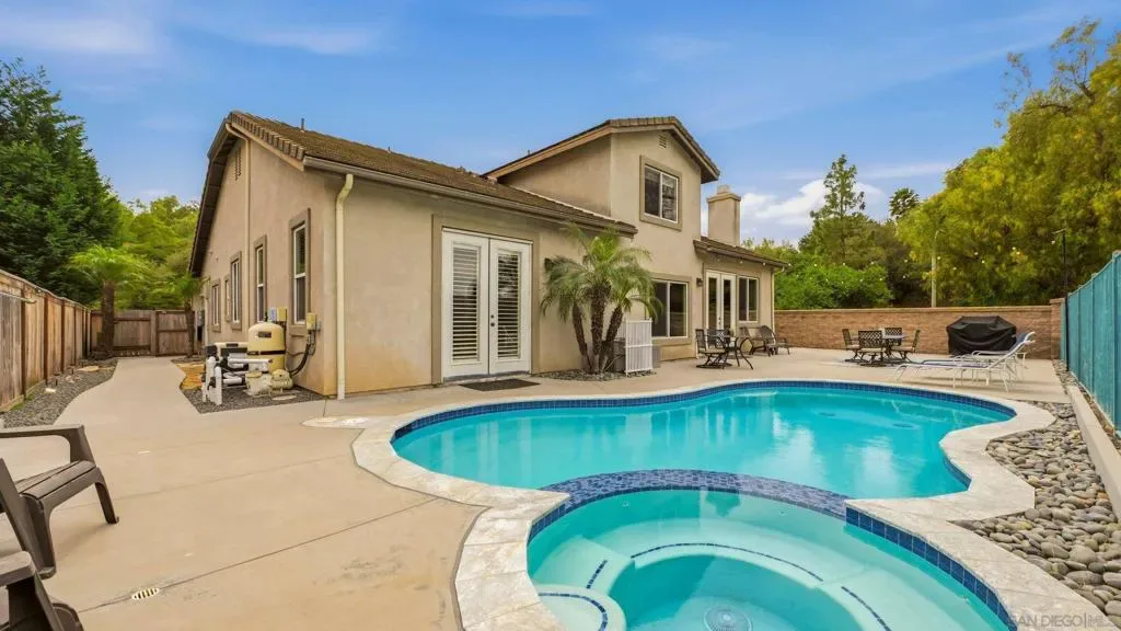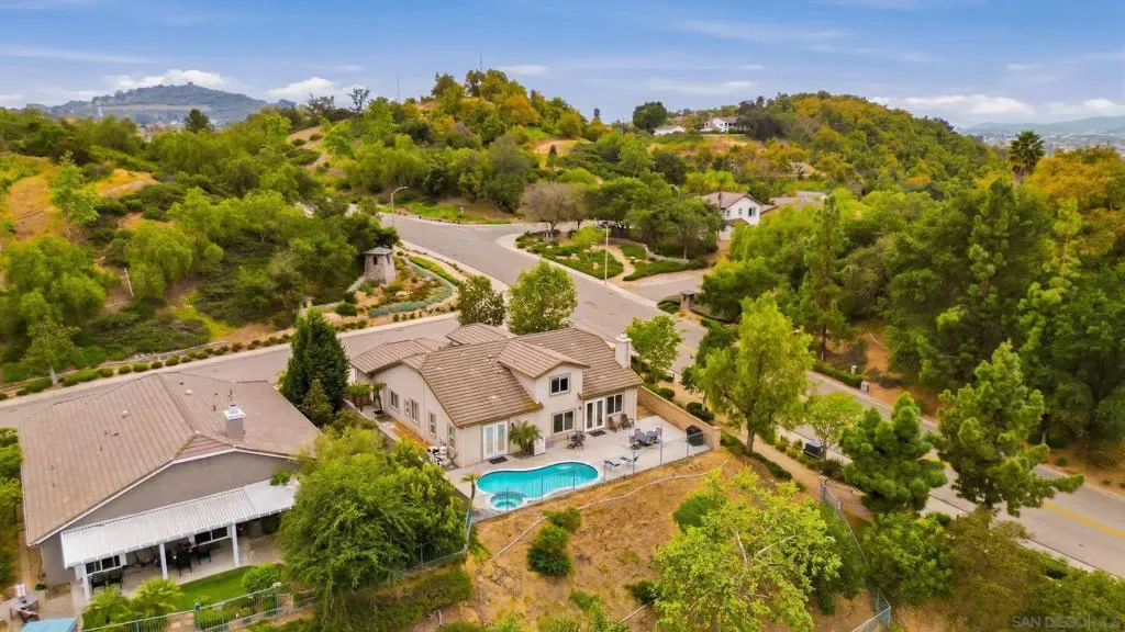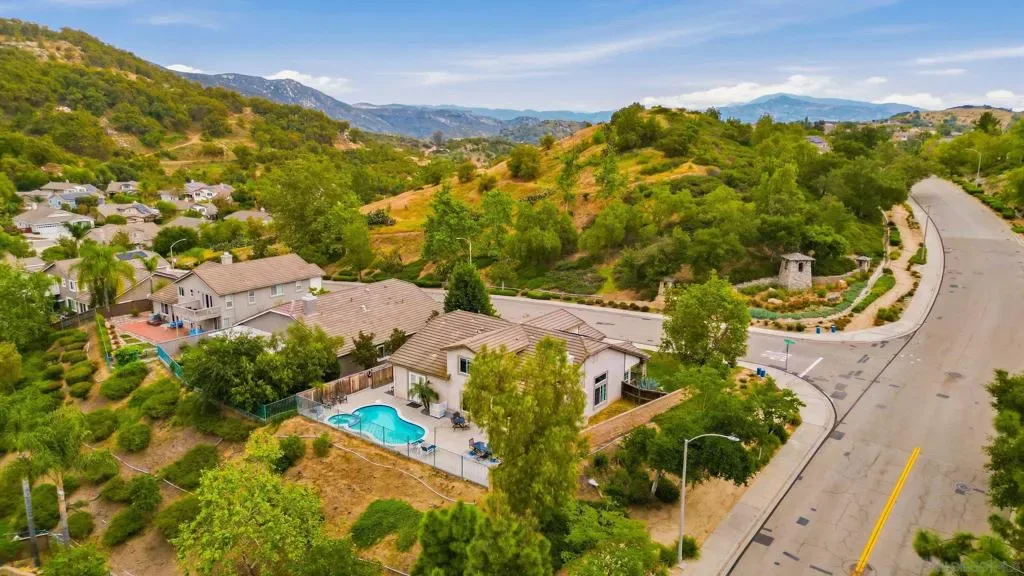 Nestled in the highly sought-after Hidden Trails community, this storybook view home offers the perfect blend of comfort, style, and functionality. Featuring 4 spacious bedrooms plus a versatile den that can easily serve as an optional 5th bedroom.The primary suite is conveniently located on the first floor, creating an ideal private retreat. Open-concept kitchen is the heart of the home, offering abundant storage, generous prep space, and seamless flow into the main living areas, perfect for both everyday living and entertaining. Step outside to your own backyard oasis where gorgeous panoramic views set the stage for unforgettable sunsets. Enjoy the newer pool, built in 2022.Recent upgrades include:Dishwasher installed May 2020,Hot water heater replaced March 2020,Microwave installed November 2019,Soft-close toilet seats throughout,Spacious 3-car garage. Home also has solar. This exceptional home combines timeless charm with thoughtful updates in one of the area’s most desirable neighborhoods in Escondido.