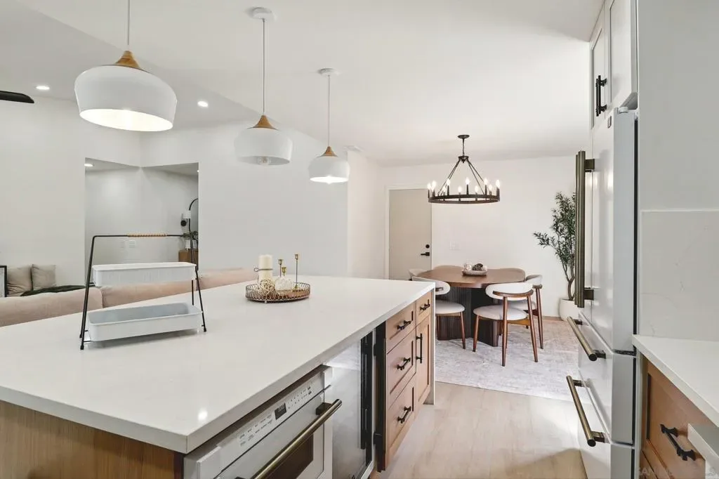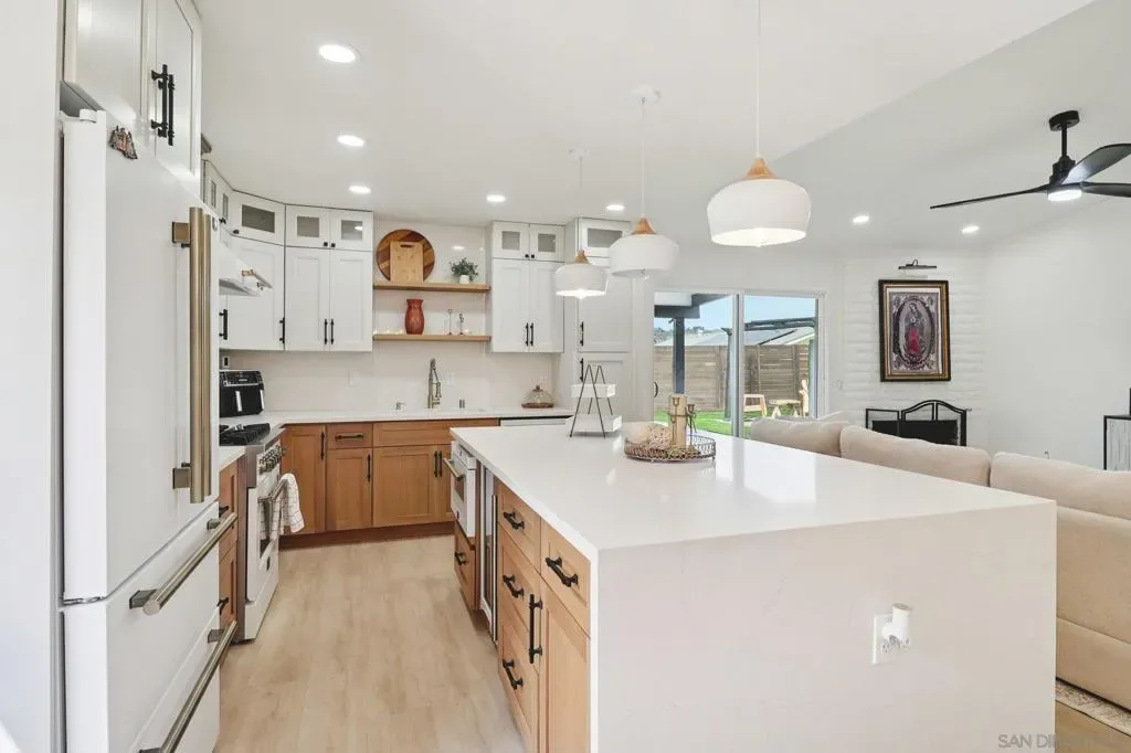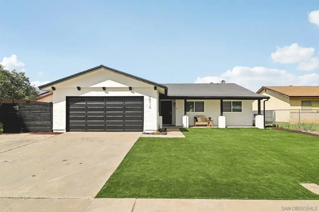 Beautifully updated single-level home in Escondido showcasing thoughtful upgrades throughout. This move-in-ready residence features a new roof, newer windows, and canned lighting throughout. The showstopper kitchen is designed for both style and function, offering quartz countertops, a spacious island with pendant lighting, a gas stove, wine cooler, and top-of-the-line Forno appliances. Additional highlights include beautifully updated bathrooms, a cozy fireplace, a dedicated office space ideal for working from home, a new electrical panel, newer furnace and central AC, and a Tesla charger. Enjoy low-maintenance outdoor spaces with upgraded turf in both the front and backyard. The home also includes an attached two-car garage. Ideally located close to shopping, dining, schools, and convenient access to California State Route 78.