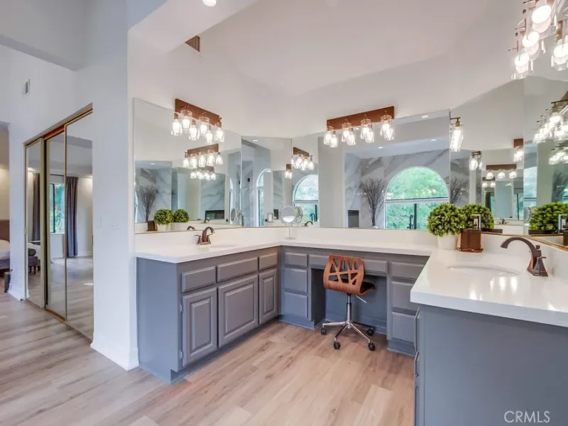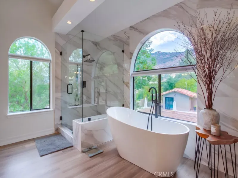 The main residence offers approximately 4,000 square feet of thoughtfully updated living space with neutral tones throughout, including ceramic tile and luxury vinyl plank flooring. The kitchen features granite countertops, updated cabinetry, generous storage, and abundant counter space ideal for everyday living or entertaining. Bathrooms throughout the home have been tastefully updated with quartz countertops and modern finishes, including a beautifully remodeled primary bathroom with a contemporary soaking tub, upgraded shower surround, and stylish fixtures that create a spa-like retreat. The backyard serves as a private oasis with an in-ground pool and a separate pool house that offers flexible space for an entertainment room, home gym, studio, or private office.