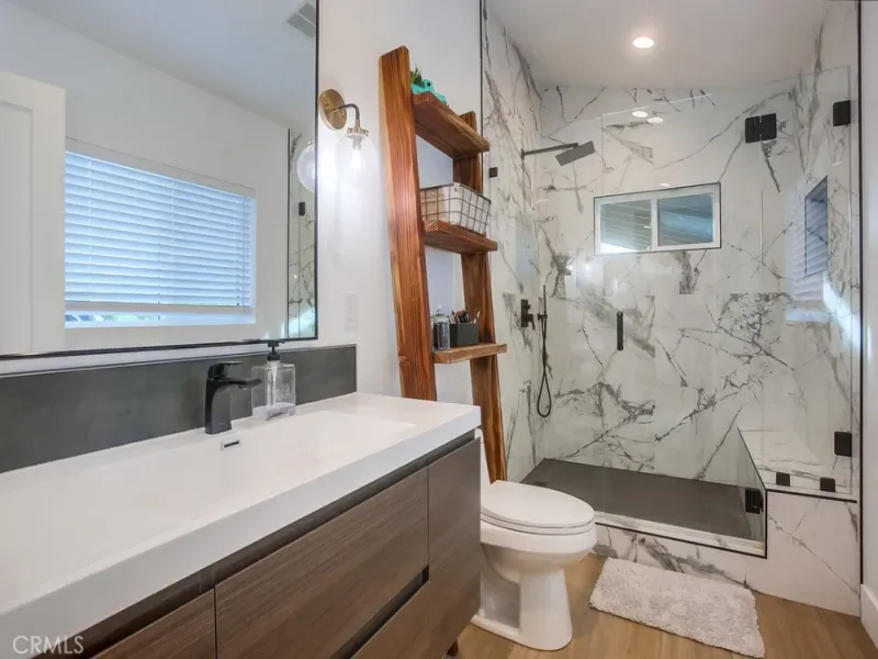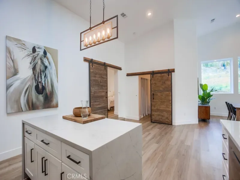 The second non-conforming detached guest residence (approx. 2 bed plus office, 2.5 bath) provides additional living flexibility and has been thoughtfully updated with similar finishes found throughout the property, including neutral tones, updated flooring, quartz kitchen countertops, stainless appliances, and a dedicated laundry room. The oversized garage attached to this structure includes a half bath and offers exceptional versatility—large enough to accommodate an RV, workshop, storage, or potential home-based business use.
