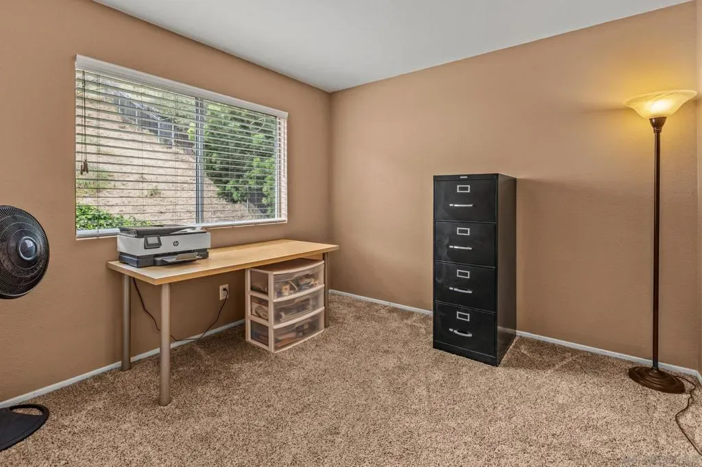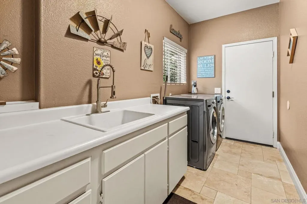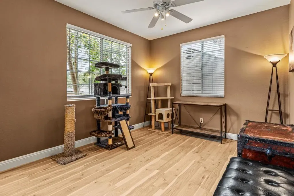 Tucked away on a quiet cul-de-sac in the scenic hills of North Escondido, near Lake Dixon, this beautiful two-story home offers a rare combination of privacy, tranquility, and natural separation from the surrounding city. Set against gently rolling topography, the property enjoys a peaceful, almost secluded feel while still being conveniently close to local amenities. Inside, you’ll find a spacious and inviting open floor plan highlighted by soaring cathedral ceilings and a cozy fireplace. The generously sized walk-in laundry room offers abundant counter space, cabinetry, and a deep basin sink for added convenience. Upstairs, the primary suite features a double-door entry and vaulted ceilings, complemented by a private retreat with French doors that open to a spacious deck overlooking the backyard, capturing refreshing coastal breezes. The ensuite bath features dual sinks, a separate soaking tub and shower, and both his-and-hers closets. Designed for comfort, this light-filled home stays cool with ceiling fans and central air conditioning. With no rear neighbors, enjoy exceptional privacy in a spacious, peaceful backyard—perfect for relaxing or entertaining. A wonderful place to call home!