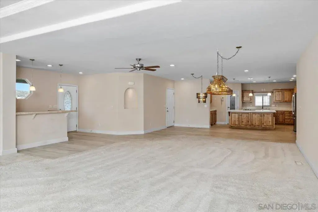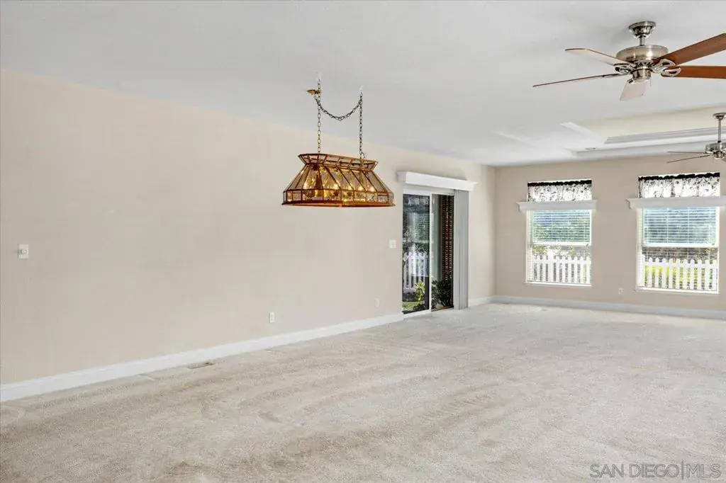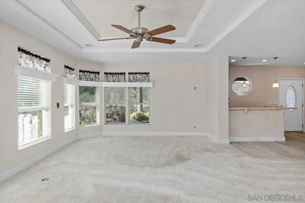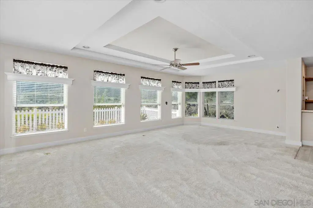 Welcome to the private, resort-style living of Champagne Village. This exceptional residence is one of the largest properties in the community, offering paid-for solar, a rare three-car garage, and a premier location at the end of a quiet cul-de-sac. Perched atop a gentle hill, it enjoys panoramic views overlooking the picturesque entry to Escondido’s hidden valley. As you step inside, your eyes are immediately drawn to the sweeping vistas framed by nearly every window of this expansive great room. (see below) The open layout features a warm, family-style kitchen, a dedicated dining area, and an impressively spacious living room—large enough to showcase a grand piano or to create multiple inviting seating areas for relaxed everyday living or effortless entertaining.