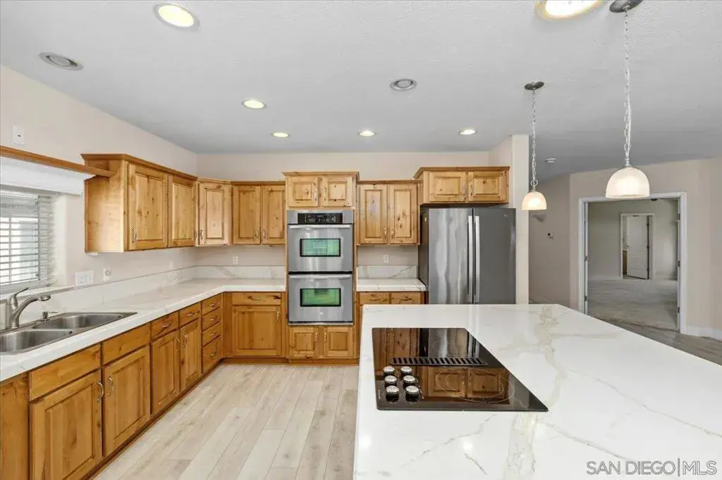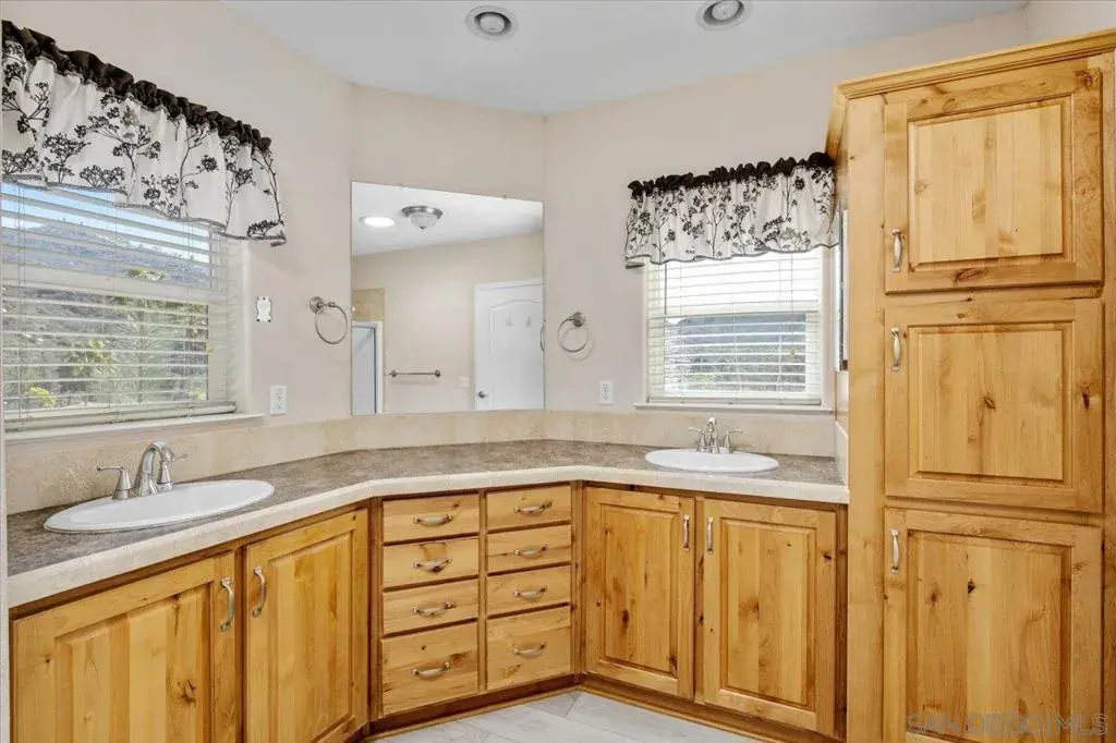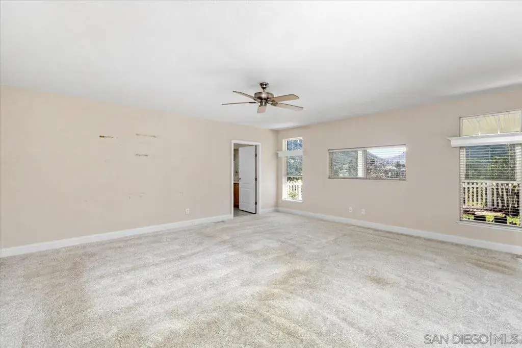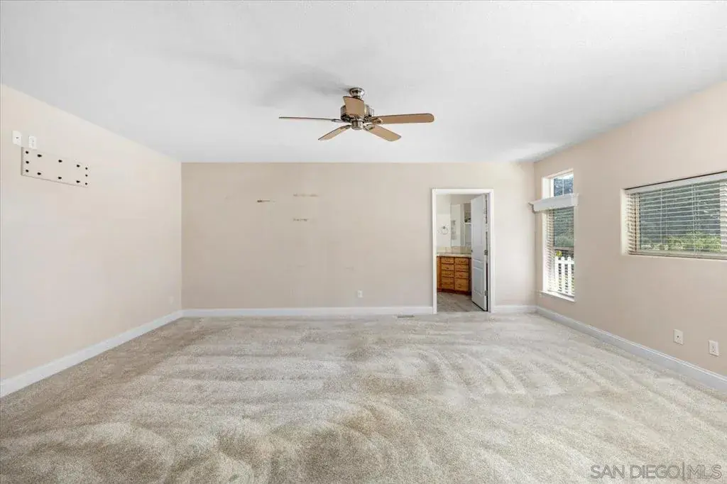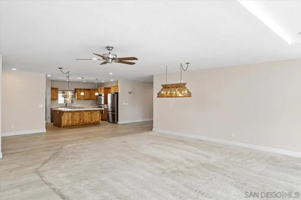 Welcome to the private, resort-style living of Champagne Village. This exceptional residence is one of the largest properties in the community, offering paid-for solar, a rare three-car garage, and a premier location at the end of a quiet cul-de-sac. Perched atop a gentle hill, it enjoys panoramic views overlooking the picturesque entry to Escondido’s hidden valley. As you step inside, your eyes are immediately drawn to the sweeping vistas framed by nearly every window of this expansive great room. (see below) The open layout features a warm, family-style kitchen, a dedicated dining area, and an impressively spacious living room—large enough to showcase a grand piano or to create multiple inviting seating areas for relaxed everyday living or effortless entertaining.