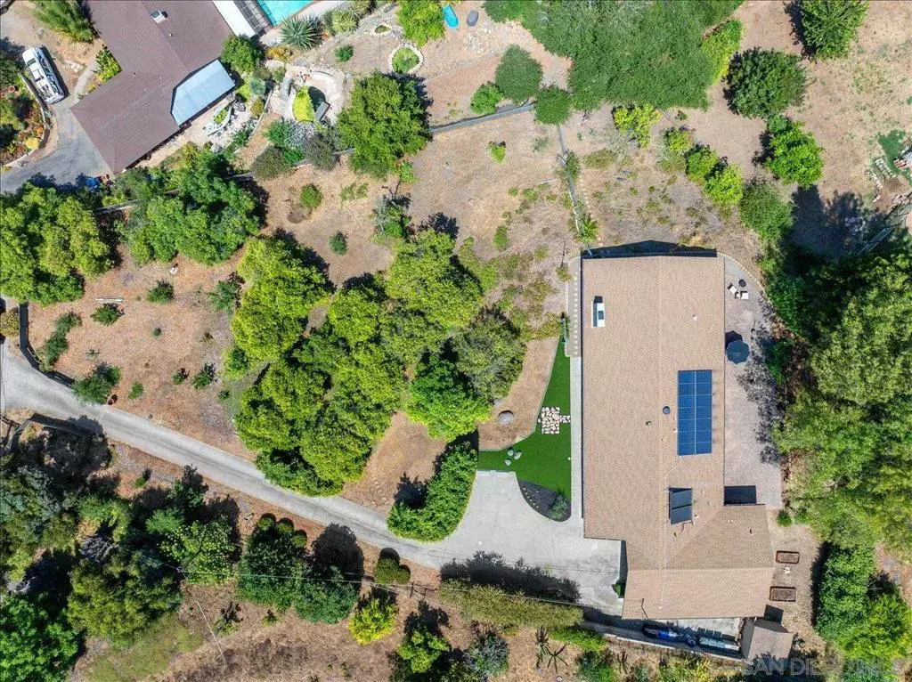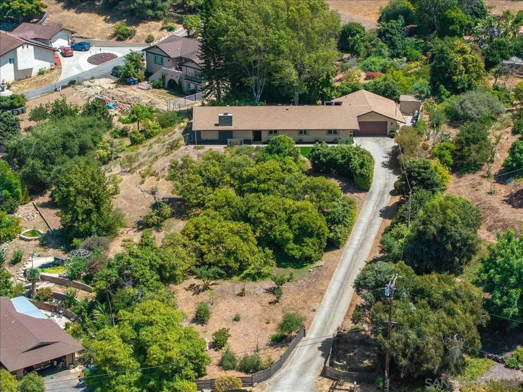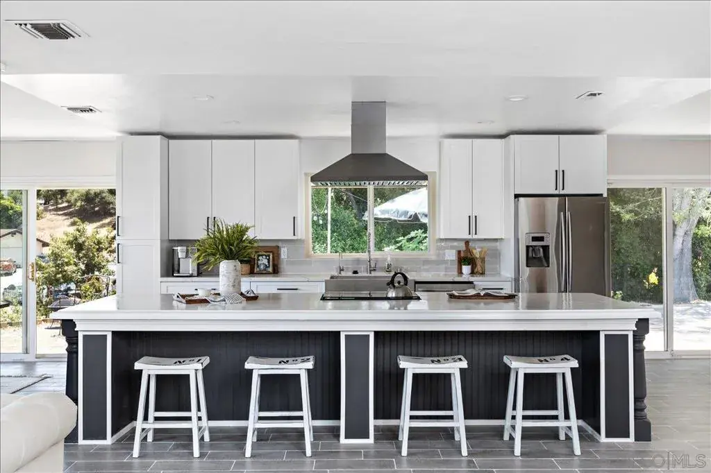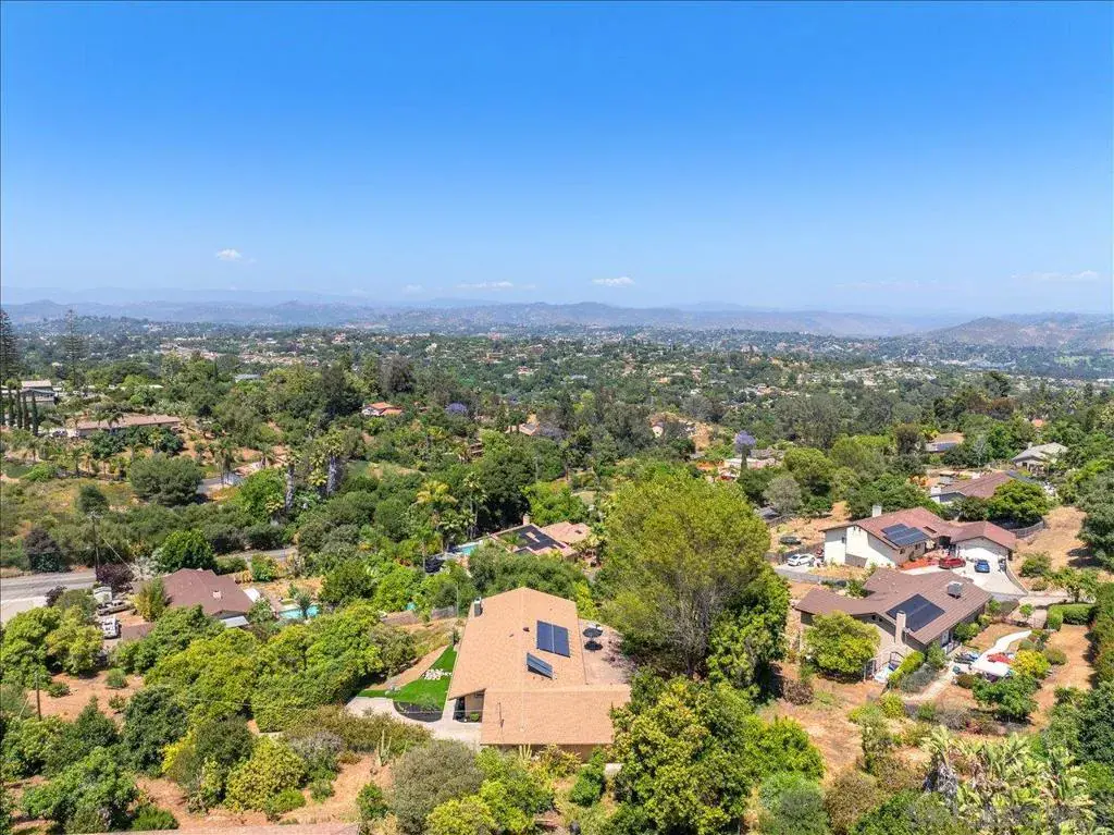 This beautifully updated single-level ranch home is privately situated on a fully gated and cross-fenced three-quarter acre lot in desirable South Escondido. Surrounded by mature landscaping and established fruit trees, the property offers exceptional privacy along with exciting potential for a future ADU. Designed to capture its breathtaking surroundings, the home showcases stunning views of both Palomar Mountain and Laguna Mountain through expansive floor-to-ceiling windows that flood the interior with natural light. The remodeled kitchen is both stylish and functional, featuring quartz countertops, a striking oversized concrete island, stainless steel appliances, white soft-close cabinetry, and an open layout that seamlessly connects to the living and dining areas. The inviting living room offers a cozy fireplace and comfortable sitting area just off the kitchen, ideal for everyday living and entertaining. Sliding glass doors open to a spacious paver patio with outdoor lighting, creating a perfect setting for gatherings or quiet evenings enjoying the mountain views. The home offers four bedrooms and two remodeled bathrooms, with one bedroom ideally suited for an office or flexible use. An indoor laundry room is conveniently located near the bedrooms for everyday ease. Additional highlights include central air conditioning, a leased solar system, and an expansive garage capable of housing up to four vehicles. The garage also includes a bonus half bathroom and offers ample space for workshop use or additional storage. See Supplement.. Ideally located near shopping, dining, parks, schools, and major freeways, this private South Escondido retreat combines comfort, functionality, and scenic beauty in one exceptional property.
