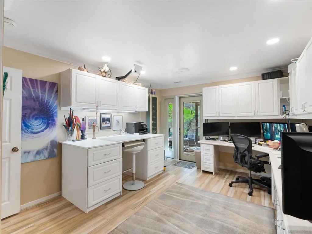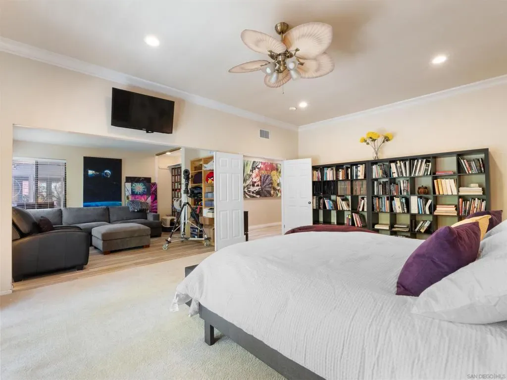 Welcome to your own private botanical garden in the highly desirable South Escondido neighborhood of Lomas Serenas. Tucked away on a peaceful cul-de-sac, this rare single-story former model home sits on over half an acre, offering a daily escape with hummingbirds, butterflies, and fresh fruit harvesting in your own backyard. Wander on garden paths through a thriving orchard, past peaceful sitting areas, and a multi-tier waterfall that flows into a tranquil koi pond. Enjoy a farm-to-table lifestyle with citrus, peaches, grapes, apples, berries, honey, and more. Inside, 3,159 sq ft of living space features vaulted ceilings, large skylights, whole-home sound, and elegant spaces for entertaining or relaxing. The kitchen showcases GE Monogram appliances and a large dine-in island, while a beverage bar with dual refrigerators and a formal dining area make hosting effortless. A climate-controlled sunroom and screened patio blend indoor and outdoor living. One bedroom is currently a built-in office, ideal for working from home. The primary suite offers a double-door entry, bonus retreat, and glass doors opening to soothing water features. The spa-style bath includes a soaking tub, garden atrium, and custom walk-in closet. Additional highlights include owned solar with battery back up, a 3-car garage with workshop, custom patio covers, and a fully fenced yard. Ideally located west of I-15 near Lake Hodges and North County Mall, this peaceful retreat is still only minutes away from everything.