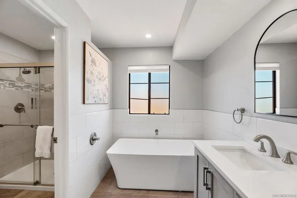 Perched in the highly sought-after Sonata community of South Escondido, this beautifully maintained home offers the perfect blend of tranquility and convenience—set above the hustle and bustle, yet just minutes from freeways, shopping, top-rated schools, Kit Carson Park, The Vineyard Golf Course, Orfila Winery and Safari Park. Proudly owned and meticulously cared for by the same homeowner for the past 29 years, this split-level residence showcases true pride of ownership throughout. The versatile floor plan features both a spacious living room and a separate family room, ideal for flexible living and entertaining. Thoughtful updates have been completed over the years, including a recently remodeled hall bathroom in 2024. Modern upgrades include owned solar, and an upgraded 200 AMP electrical panel, offering both efficiency and peace of mind. Step outside to your private backyard retreat, complete with a sparkling swimming pool, spa, kiddie pool, and a tranquil waterfall feature. Multiple outdoor seating and entertaining areas provide the perfect setting to enjoy San Diego’s year-round sunshine. Residents of Sonata enjoy a well-maintained community with low HOA fees, access to tennis and pickleball courts, and several neighborhood parks—making this an exceptional place to call home.