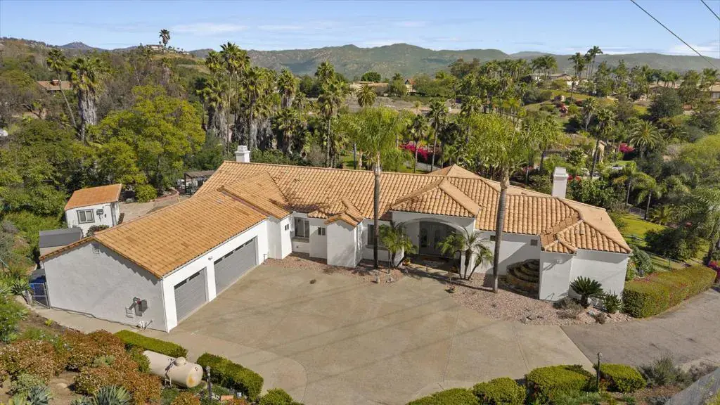 Set behind sweeping natural landscapes, 2821 Summit Drive is a rare Mediterranean ranch estate where refined architecture meets the quiet grandeur of North County’s rolling hills. Situated on two private acres, this single-level residence embodies effortless sophistication, offering an elevated lifestyle defined by space, privacy, and timeless design. Sunlit interiors unfold seamlessly into expansive outdoor living areas, creating a fluid connection between home and horizon. At the heart of the estate, a saltwater infinity-edge pool frames panoramic views, transforming every sunrise and sunset into a cinematic experience. The grounds provide a canvas for bespoke living — from curated gardens and outdoor entertaining spaces to vineyard-inspired possibilities and an orchard featuring over 30 fruit trees (15 varieties). Thoughtfully designed for both intimate moments and grand gatherings, the residence balances warmth with scale and luxury with tranquility. Ideally positioned for serene seclusion yet moments from the conveniences of North County San Diego, this exceptional property represents a rare opportunity to own a private retreat where architecture, nature, and lifestyle converge. Amazing single story Mediterranean ranch with an infinity edge pool, 30 fruit tree orchard, PAID SOLAR and 16 chickens (14 hens / 2 roosters) included. Possibilities are endless! Luxury, convenience, privacy and views all converge in this rare opportunity to own a piece of paradise. Entire exterior painted in January 2026.