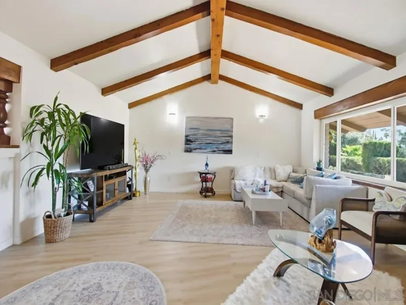 Welcome to this distinguished and rarely available adobe-style residence, offering exceptional character and warmth. Situated on a spacious lot exceeding one acre, this unique property provides a remarkable combination of privacy, functionality and timeless appeal. Upon entry you are greeted by a generously proportioned living room featuring classic adobe walls, exposed beam ceilings, and an inviting fireplace ideal for both relaxation and refined entertaining. The open-concept design transitions seamlessly into the expansive kitchen creating an ideal setting for gatherings. The primary suite serves as a private retreat complete with a beautifully appointed fireplace that enhances both elegance and comfort. Vaulted ceilings and a neutral color palette throughout the home contribute to a bright and airy ambiance. The exterior grounds feature a thoughtfully designed terraced backyard offering abundant space for entertaining, gardening, or the development of a private grove. Two detached garages provide ample accommodation for vehicles, storage, or workshop use. Ideally located just minutes from I-15, as well as premier schools, medical facilities, and shopping destinations, this exceptional property presents a rare opportunity to enjoy both convenience and tranquility.