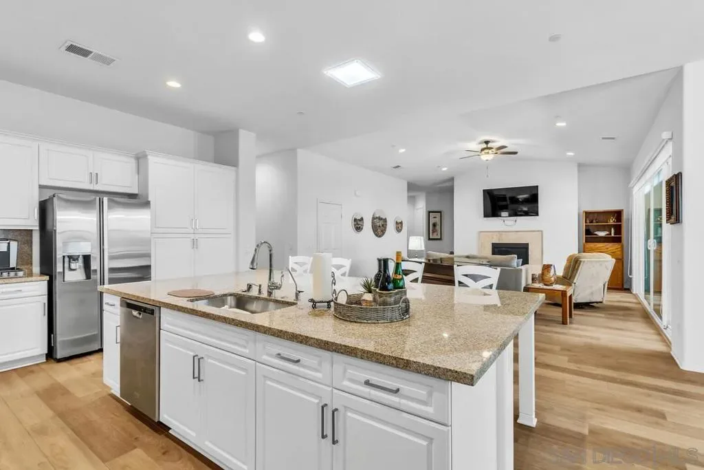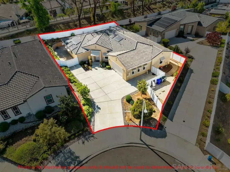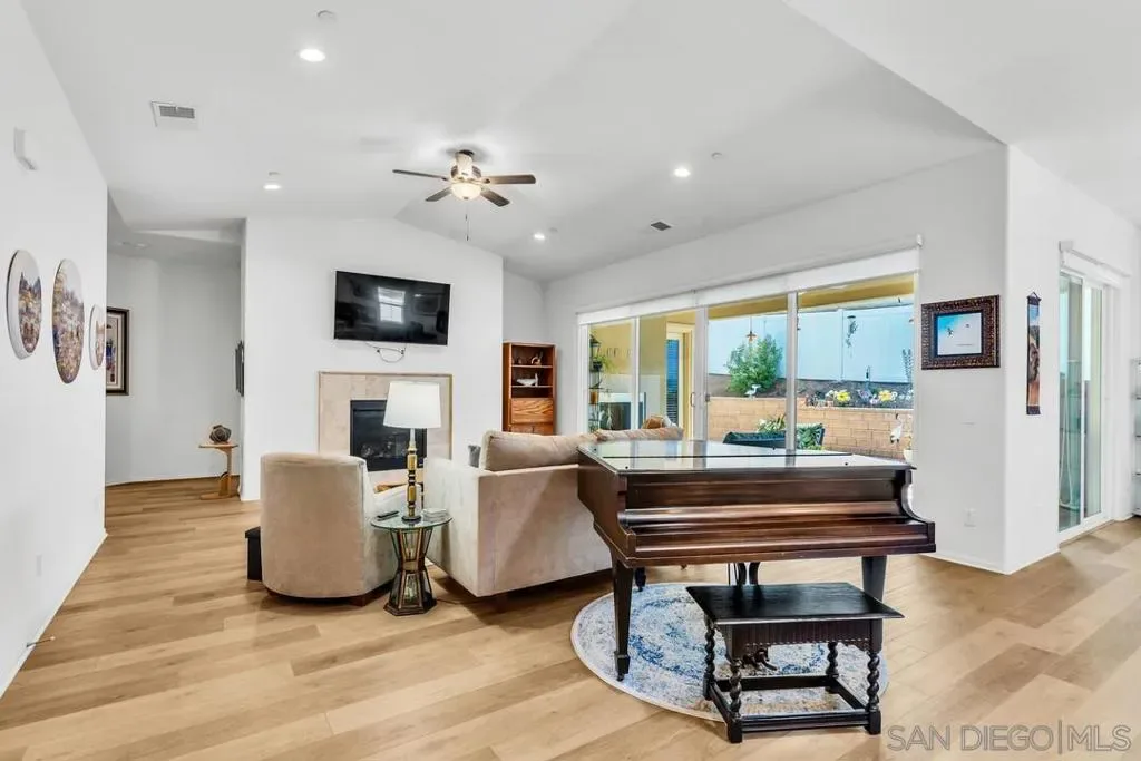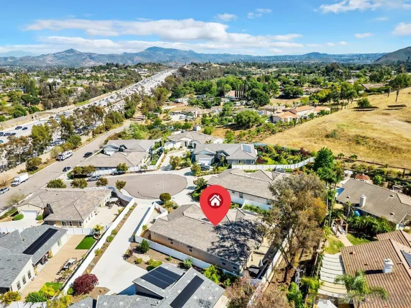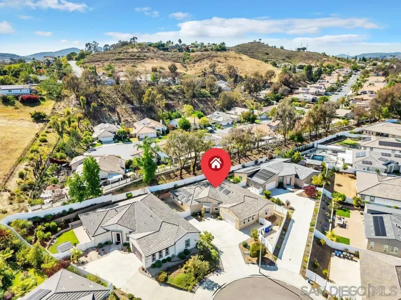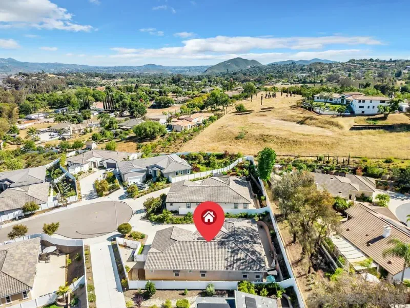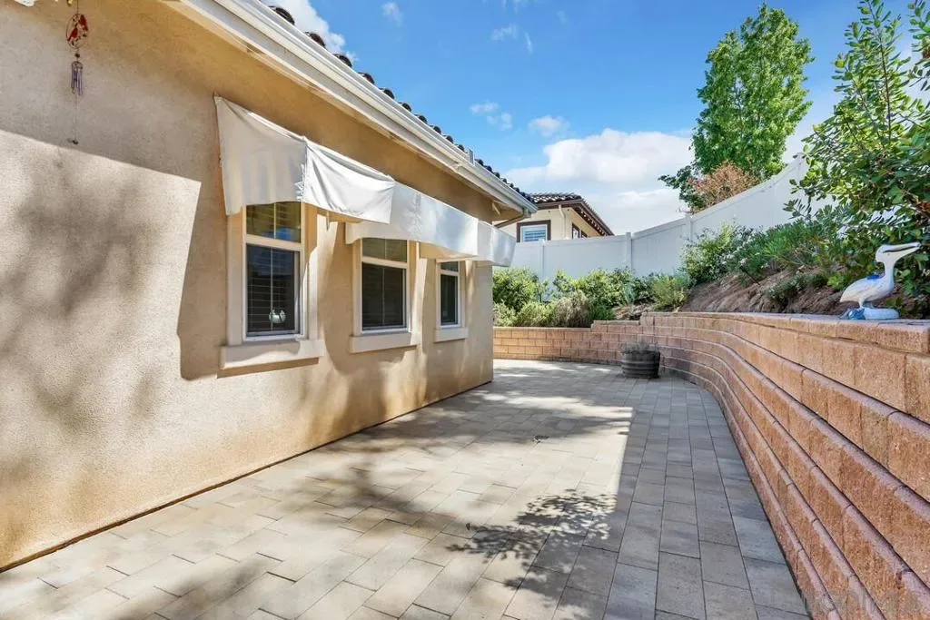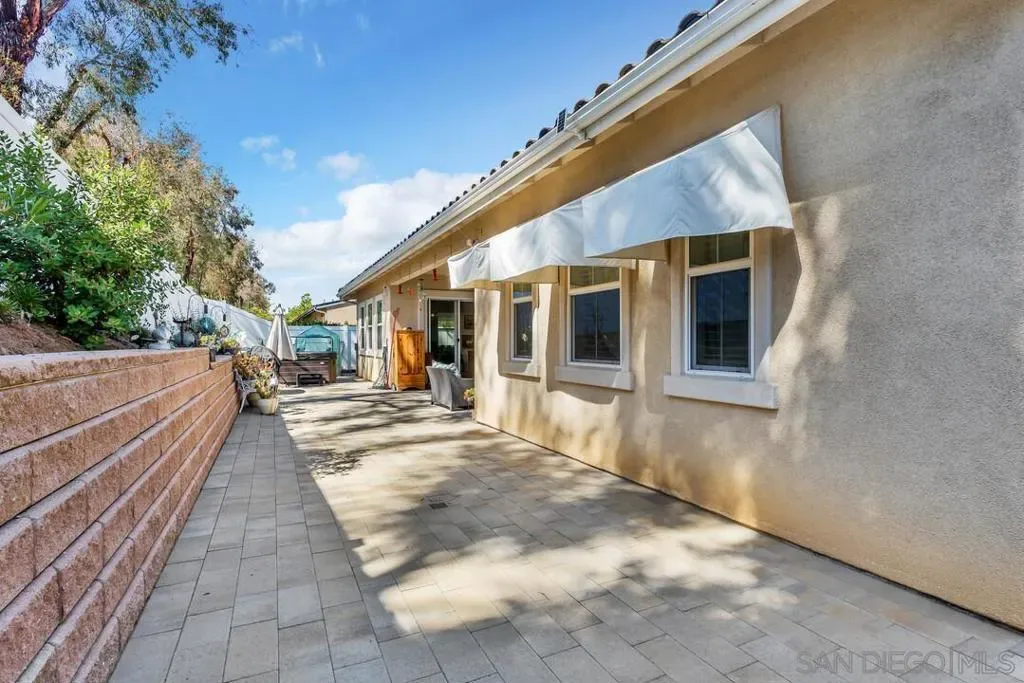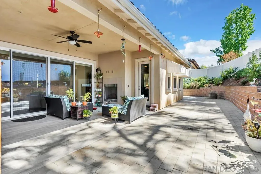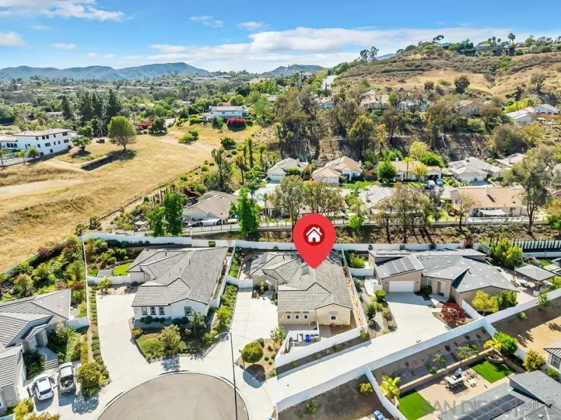 Location, Location, Location! Welcome to 1949 Estancia Pl, a single-level gem featuring 2,615 sqft of living space with 4 bedrooms and 3 bathrooms, perfectly situated at the end of a quiet cul-de-sac in a private South Escondido neighborhood. Built in 2019, this home is incredibly spacious with a seamless, intuitive floorplan. THE FLOW… Upon entry, you are immediately greeted by high ceilings that draw your eyes through the main living area to the expansive kitchen. To your right, a versatile bedroom flexes nicely as a home office with direct bathroom access. In fact, every bedroom in this home has direct access to a bathroom! The primary suite is a true retreat, tucked away at the south end of the home with an ensuite bath, walk-in closet, and a private entrance to the backyard. The heart of the home is the spacious living room, featuring a cozy fireplace and massive sliding doors that lead to a signature California Room—complete with a second fireplace for cool evenings. The kitchen is massive, boasting an oversized island with extra seating, plentiful cabinetry, and a walk-in pantry. Perfectly adjacent is the dining area, which also opens to the California Room. On the opposite side of the kitchen, a hallway leads to the laundry room, the 3-car tandem garage, and the remaining secondary bedrooms at the north end. OUTDOOR LIVING… The backyard is private featuring beautiful retaining walls, fruit trees, lush landscaping, and a relaxing spa. Take advantage of PAID SOLAR and the gated RV parking on the south boundary. Modern, private, and just 5 minutes from the fwy!