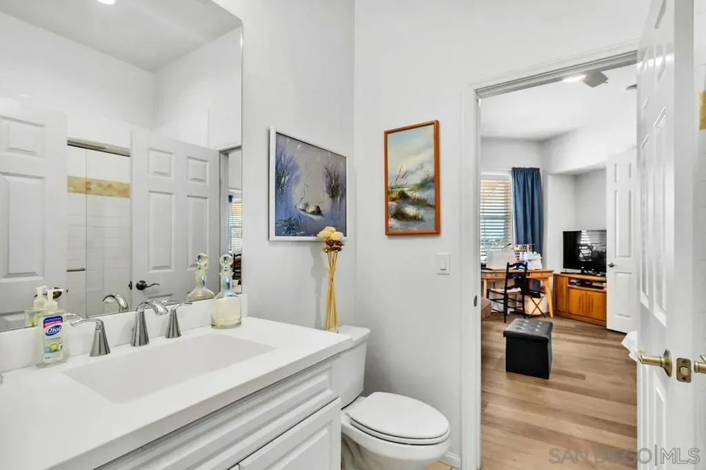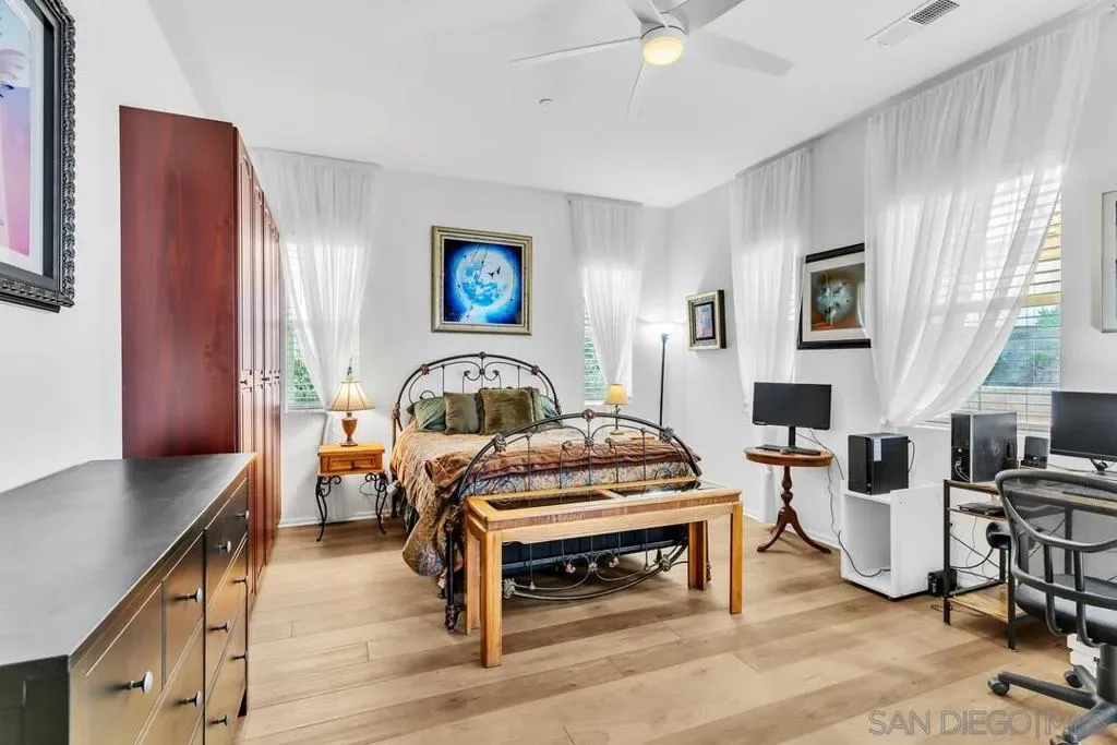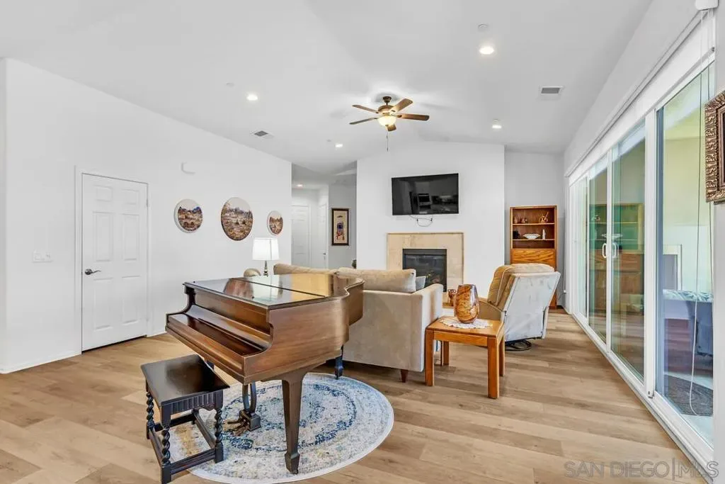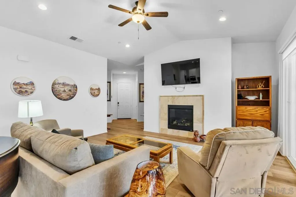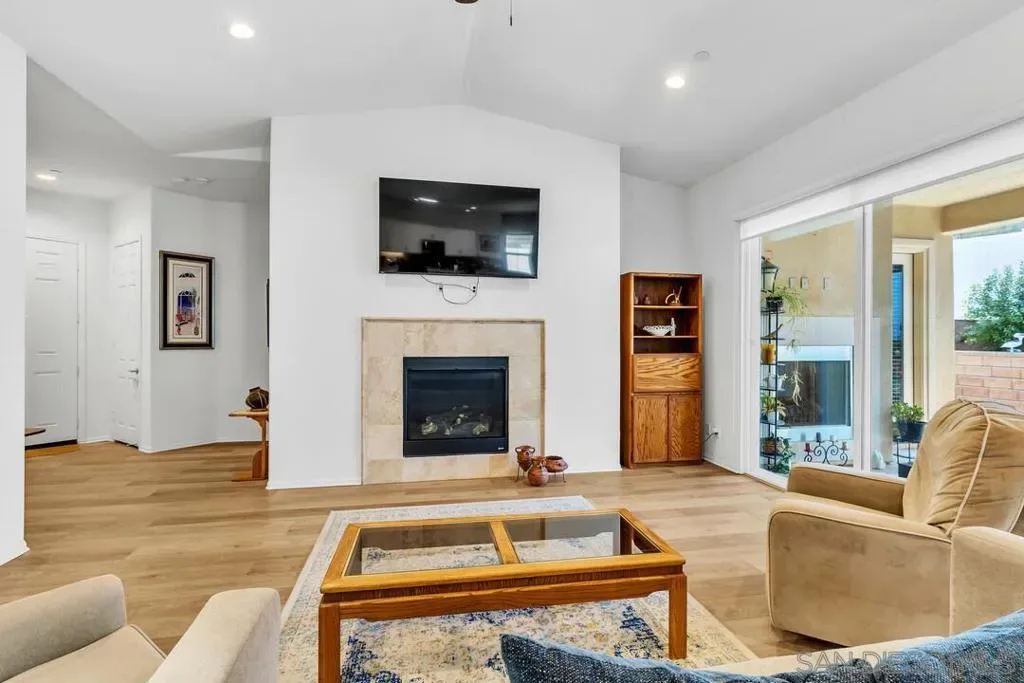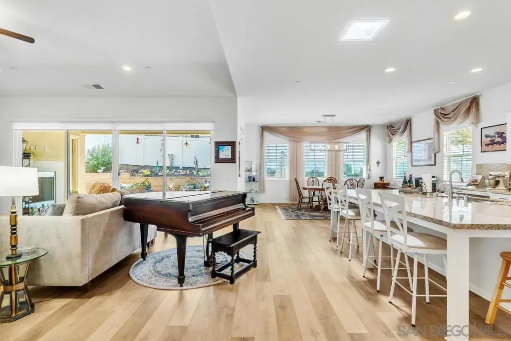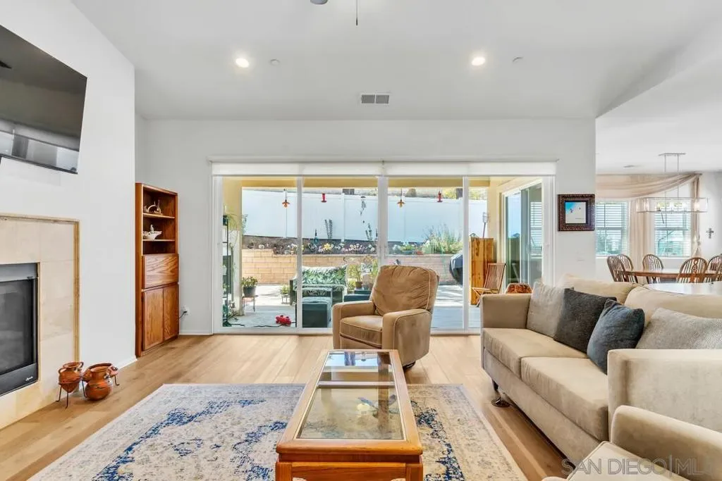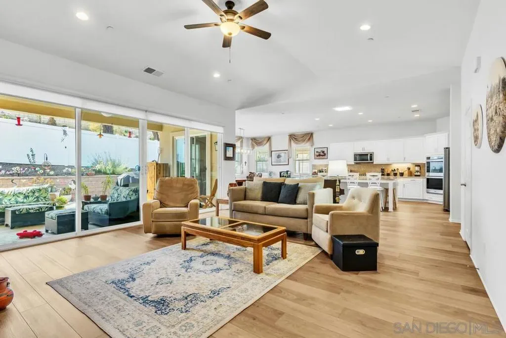 Location, Location, Location! Welcome to 1949 Estancia Pl, a single-level gem featuring 2,615 sqft of living space with 4 bedrooms and 3 bathrooms, perfectly situated at the end of a quiet cul-de-sac in a private South Escondido neighborhood. Built in 2019, this home is incredibly spacious with a seamless, intuitive floorplan. THE FLOW… Upon entry, you are immediately greeted by high ceilings that draw your eyes through the main living area to the expansive kitchen. To your right, a versatile bedroom flexes nicely as a home office with direct bathroom access. In fact, every bedroom in this home has direct access to a bathroom! The primary suite is a true retreat, tucked away at the south end of the home with an ensuite bath, walk-in closet, and a private entrance to the backyard. The heart of the home is the spacious living room, featuring a cozy fireplace and massive sliding doors that lead to a signature California Room—complete with a second fireplace for cool evenings. The kitchen is massive, boasting an oversized island with extra seating, plentiful cabinetry, and a walk-in pantry. Perfectly adjacent is the dining area, which also opens to the California Room. On the opposite side of the kitchen, a hallway leads to the laundry room, the 3-car tandem garage, and the remaining secondary bedrooms at the north end. OUTDOOR LIVING… The backyard is private featuring beautiful retaining walls, fruit trees, lush landscaping, and a relaxing spa. Take advantage of PAID SOLAR and the gated RV parking on the south boundary. Modern, private, and just 5 minutes from the fwy!