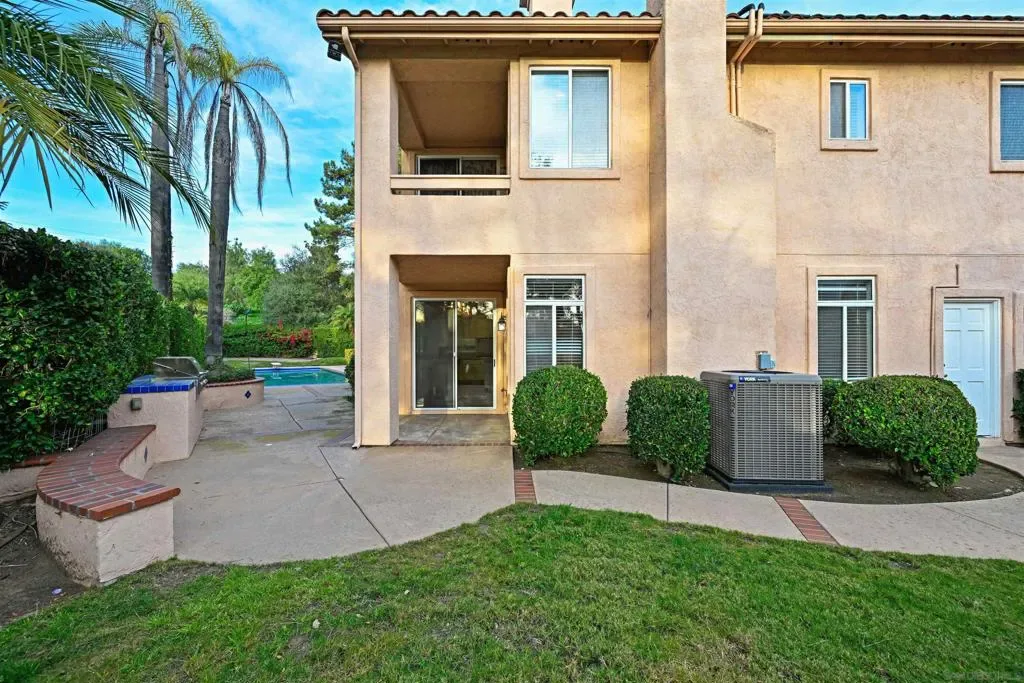 Rarely available and the largest floor plan in this gated enclave, this exceptional residence sits at the end of a cul-de-sac on one of the community’s most private lots, reached by an extra-long driveway that enhances both presence and seclusion. Inside, a grand entry and sweeping curved staircase rise beneath soaring ceilings, creating a striking first impression of elegance and scale. Walls of windows fill the formal living and dining areas with natural light, setting the stage for memorable gatherings. The chef’s kitchen is designed to inspire, featuring abundant cabinetry, quartz countertops, a 6-burner gas cooktop, walk-in pantry, and an extended garden window that bathes the space in sunshine. Adjacent, the inviting family room offers a cozy fireplace and wet bar—perfect for entertaining. The main level also includes a generously sized bedroom with en suite bath and a spacious laundry room. Upstairs, the expansive primary suite is a true retreat, highlighted by a two-sided fireplace that adds warmth and ambiance to both the bedroom and spa-like bath. Secondary bedrooms are well-appointed with convenient bathroom access. Meander outside to a resort-style backyard designed for relaxation and celebration, complete with a sparkling pool with diving board, hot tub and attached toddler/play pool, plus a built-in BBQ. Ideally located just minutes from North County Fair Mall, Kit Carson Park, and Lake Hodges, with easy access to major commuter routes, this home perfectly blends luxury, comfort, and convenience.