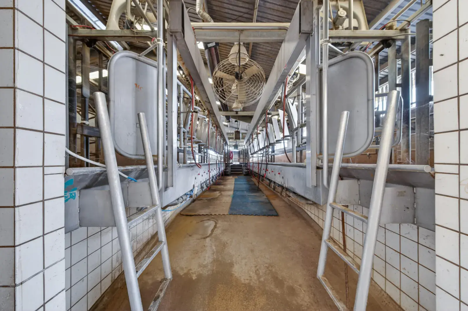 The dairy operation features a well-established, fully functional double-pit barn. The first pit is a traditional double 10-herringbone setup, and the second — added in 2007 — is a double 14-parabone pit. Inside the barn, you’ll find both a 4,000±-gallon and a 6,500±-gallon milk tank, along with a modernized milking facility.