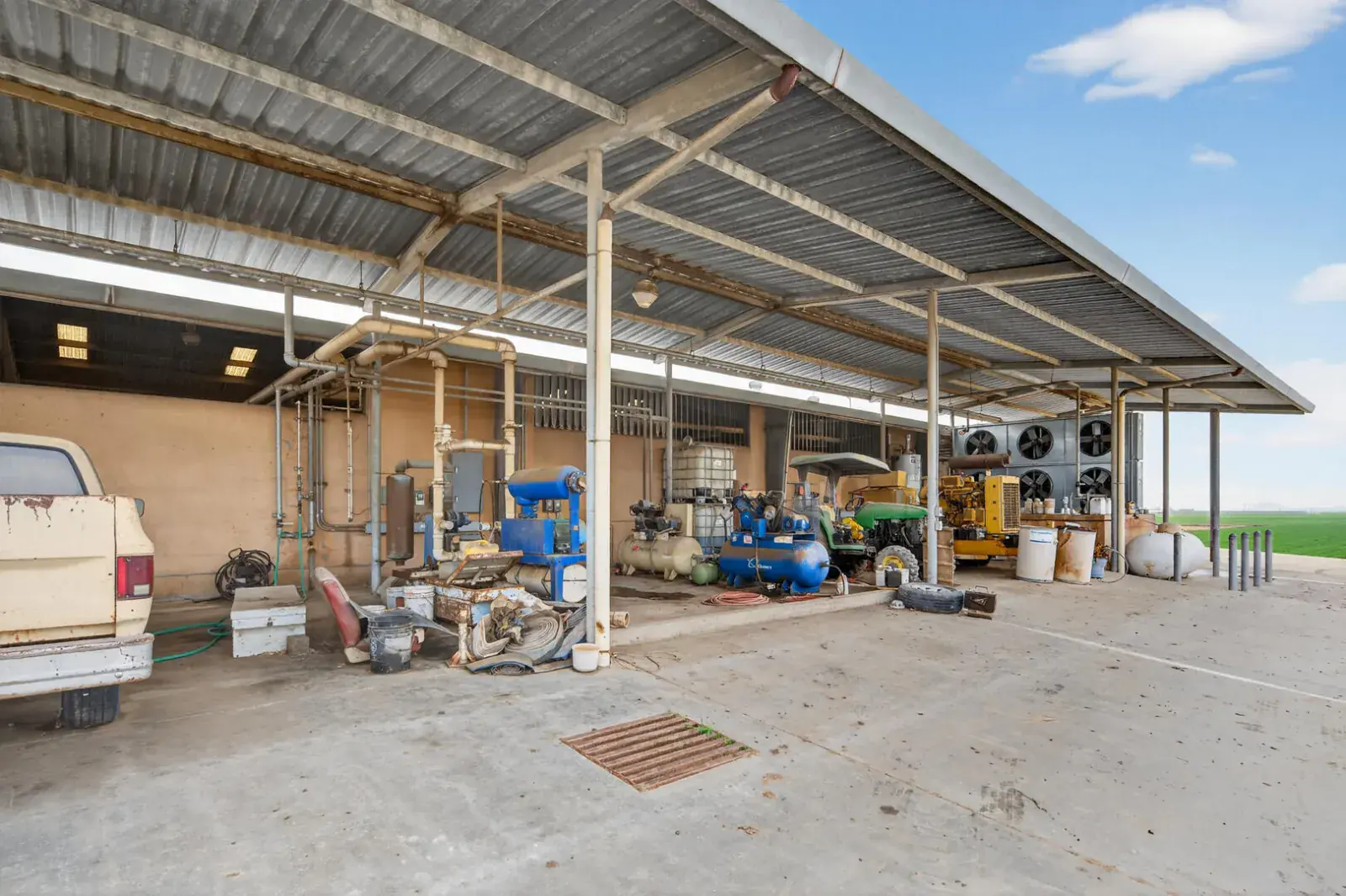 An added benefit is a pipeline system that carries manure water from the barn under highway 137 to approximately 155± acres, providing supplemental irrigation to complement the existing wells on that acreage. The barnyard area is also equipped with expansive concrete pads and outdoor covered space, ideal for an equipment maintenance shop or storage facility.