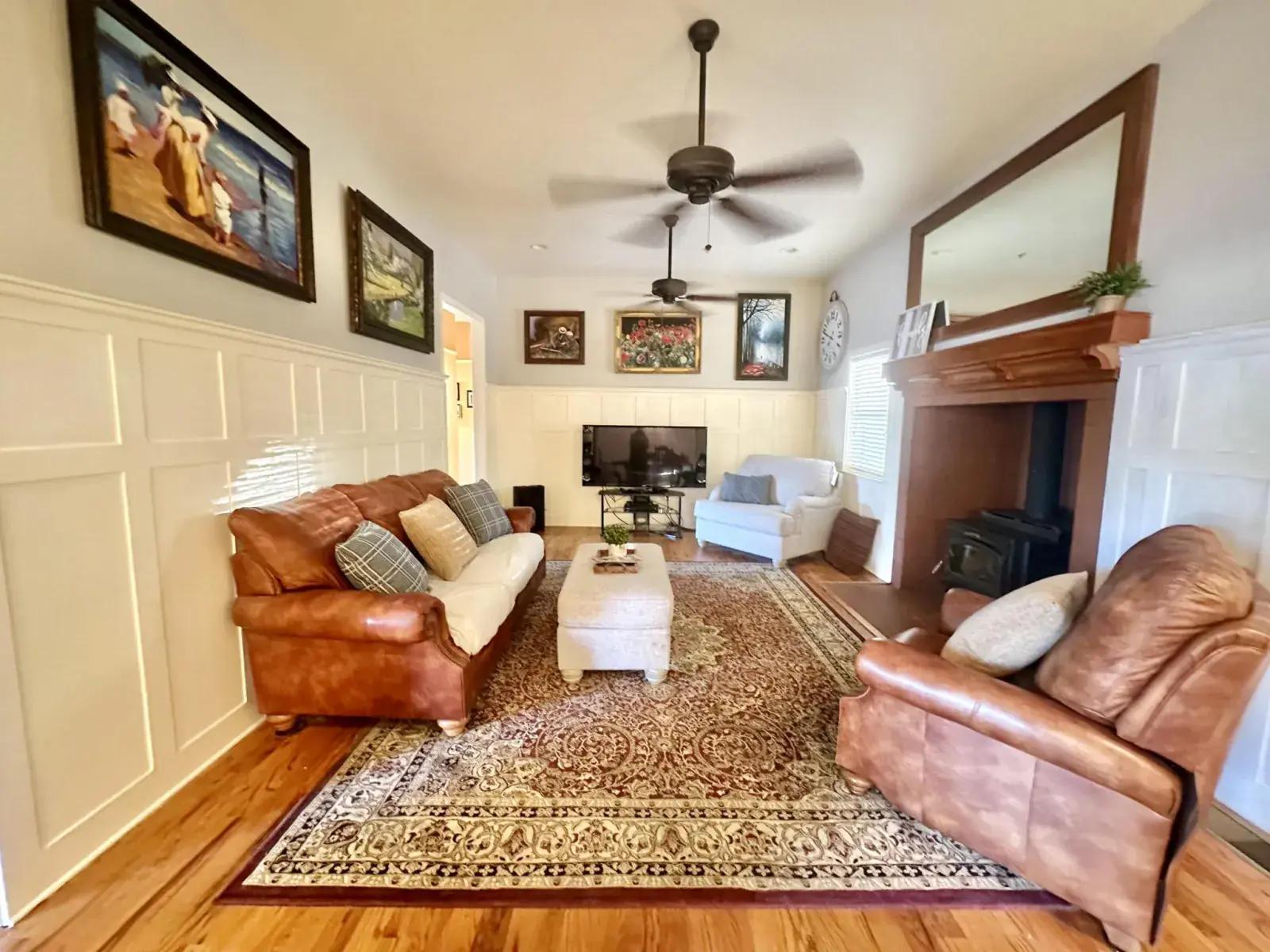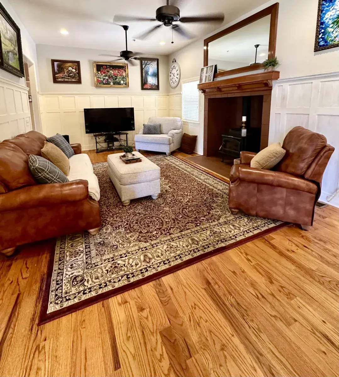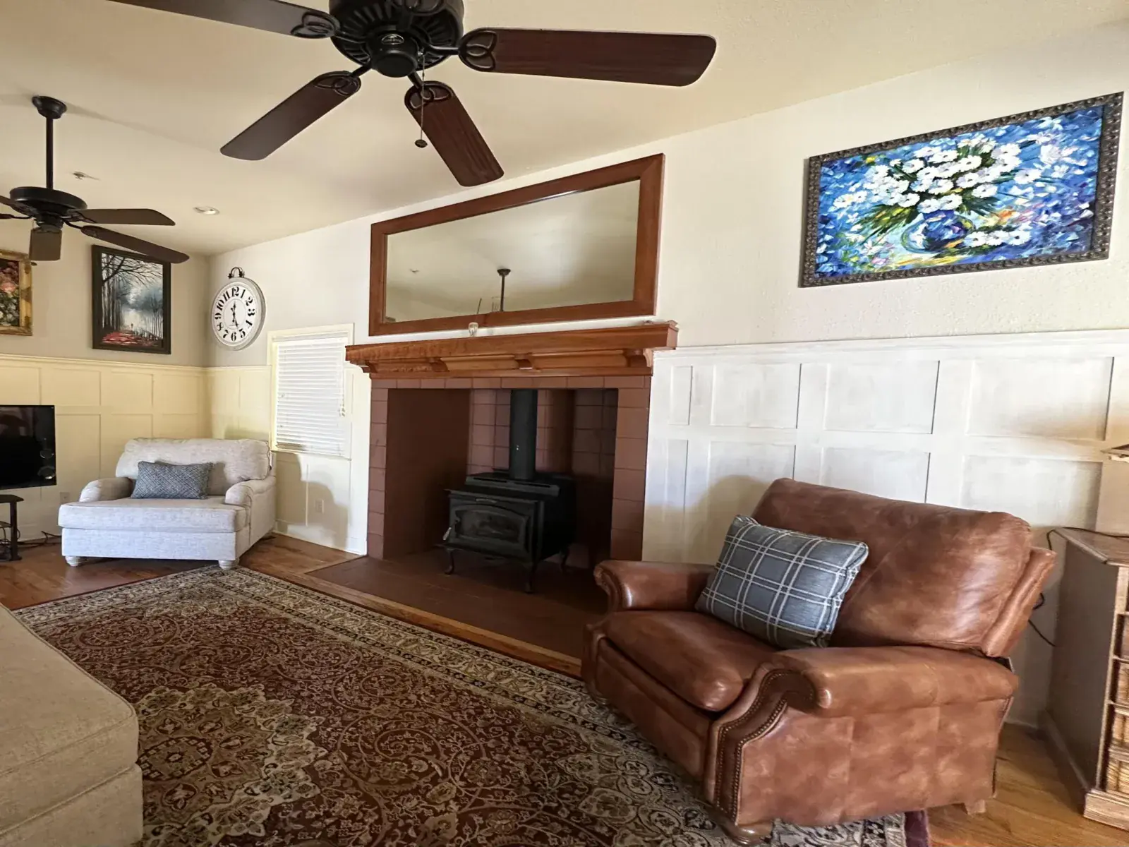 Welcome to 2535 West Visalia Rd. a custom built country home in Exeter with close proximity to town. This craftsman inspired beauty has a wrap around porch and brick steps, welcoming you in. Once inside the custom features are amazing from the batten board walls, lighted shelving in the living room, wood-burning, stove, traditional, wood floors, and custom wall of shelves in the library. The library could also be a family room, play room or easily enclosed for a 4th bedroom. The master suite is very private, has a gas fireplace, a french door with patio access, two walk in closets and custom batten molding. The guest rooms conveniently have access to a jack and Jill bathroom, The third bathroom is for guests and conveniently located for easy access. There are two sliders accessible to the wrap a round porch perfect for a morning cup of coffee or a quiet sunset. Moving outside you will not be disappointed with mature trees, and so many parking and storage options. The extensive parking is a 4+ garage, shop, with a full bathroom, garage for a ride on lawnmower, and an art studio over the garage. The art studio could be utilized for so many things. It has the potential for mother-in-law quarters, game room, home business, there are so many options. The backyard opens up into a fully fenced area that could be additional parking for trucks or could be set up for animals. The home is nestled on a cul-de-sac with two entries in for additional guest parking. This lovely home and property should be viewed to be appreciated as the custom features are too many to list. If you are looking for a one of a kind home with so many options this home is perfect for you.