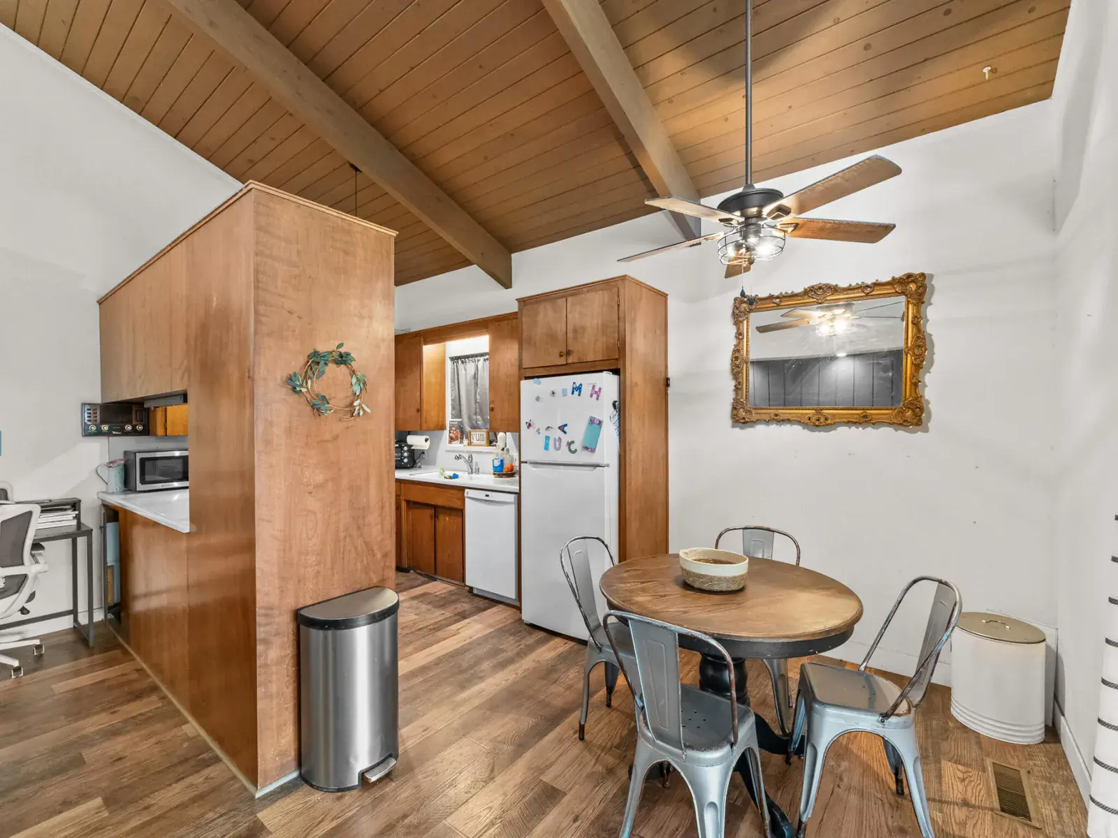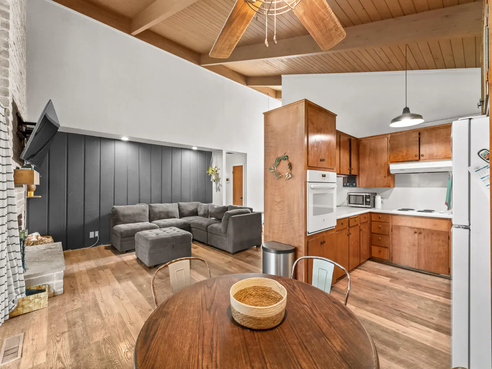 Nestled in the heart of one of Tulare County’s most charming foothill communities, this mid century inspired home captures the relaxed, small town feel that makes Exeter so loved. Inside, soaring vaulted ceilings, exposed beams, and a signature brick fireplace create an open, airy living space filled with natural light. The kitchen and dining area flow seamlessly for easy entertaining, while updates like luxury vinyl plank flooring, modern lighting, and refreshed bathrooms add everyday comfort. Three spacious bedrooms plus a convenient indoor laundry area complete the interior. Outside, the covered patio extends the home’s mid-century lines into a private backyard shaded by mature mulberry trees the perfect place to unwind or host weekend gatherings. Solar panels help keep energy costs low, and the two car garage offers extra storage and parking convenience. Located minutes from downtown Exeter’s boutiques, cafes, and murals, and just a short drive to Visalia or the Sequoia foothills, this home blends nostalgic architecture with practical modern living. Experience why Exeter continues to be one of the Central Valley’s best-kept secrets for those seeking community, character, and calm.