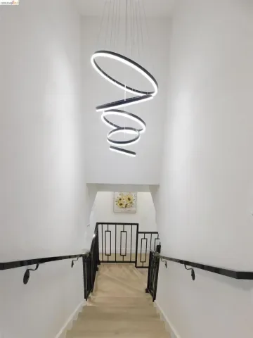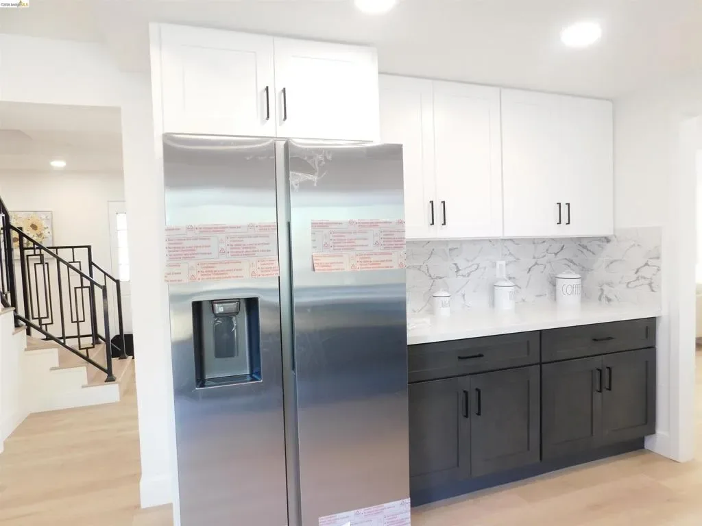 Beautifully updated contemporary home featuring bright open living spaces, modern finishes, and exceptional attention to detail throughout. The main level offers a spacious living room with a striking black brick fireplace and built-in shelving, a fully remodeled kitchen with quartz-style counters, stainless steel appliances, and two-tone cabinetry, plus a stylish dining area perfect for entertaining. Bedrooms are generously sized, including a serene primary suite with designer touches. Bathrooms have been upgraded with marble-style vanities, black fixtures, LED mirrors, and glass-enclosed showers. Additional highlights include wide-plank flooring, recessed lighting, a modern staircase with a sculptural light fixture, and abundant natural light. The landscaped backyard features a large patio and mature greenery, ideal for outdoor living. Move-in ready with a clean, modern aesthetic throughout. OH 3/29 1-4pm