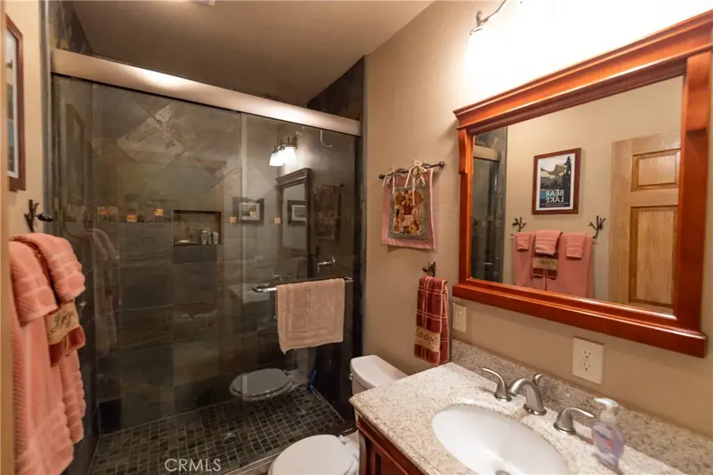 An extraordinary lakefront offering with an unmatched 394 feet of Big Bear Lake frontage, showcasing sweeping, views of the lake and San Bernardino Mountains. This 5-bedroom, 4.5-bath, 3,908 sq ft estate delivers true mountain luxury, exceptional privacy, and scale rarely found on the lake. The dramatic Great Room features soaring 30-foot ceilings, floor-to-ceiling windows, refined slate flooring, and automated electric window shades that perfectly frame the lake beyond. Throughout the home, custom alder wainscoting—unlike anything you’ve ever seen—adds warmth, craftsmanship, and architectural distinction. Three wood-burning fireplaces with gas starters enhance the mountain-lodge ambiance. Designed for effortless entertaining, the chef’s kitchen showcases custom alder cabinetry, an oversized professional refrigerator/freezer, dual ovens (gas and electric), and a butler’s pantry with dumbwaiter. A built-in wine cabinet accommodates 320+ bottles, ideal for hosting and long-term storage. The home offers two spacious primary suites, including a ground-floor primary with a jacuzzi tub, plus an upper-level primary retreat. Additional bedrooms and the game room feature plush carpeting, while living areas maintain elegant slate finishes. The expansive game room includes a pool table, shuffleboard, and game table. Outdoor living is exceptional with three balconies, a gazebo, outdoor jacuzzi, and retractable sun shade, ideal for enjoying Big Bear’s four-season lifestyle. Additional features include a heated driveway, oversized 2-car garage, indoor laundry, hidden 22’ x 15’ storage room with expansion potential, 26 solar panels, two gas furnaces plus one electric furnace, and an impressive portico entry. Situated on an 11,674 sq ft homesite plus an adjacent 20,629 sq ft lot with a private water well, this is a truly rare Big Bear Lake legacy property offering unmatched frontage, flexibility, and long-term value.