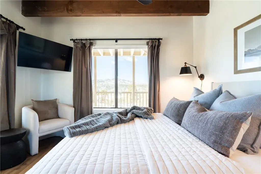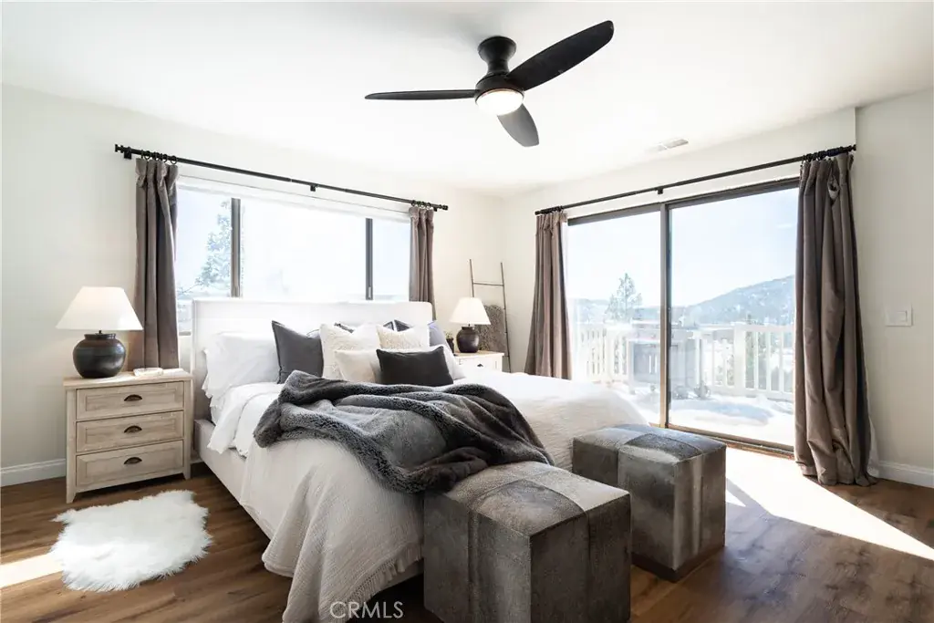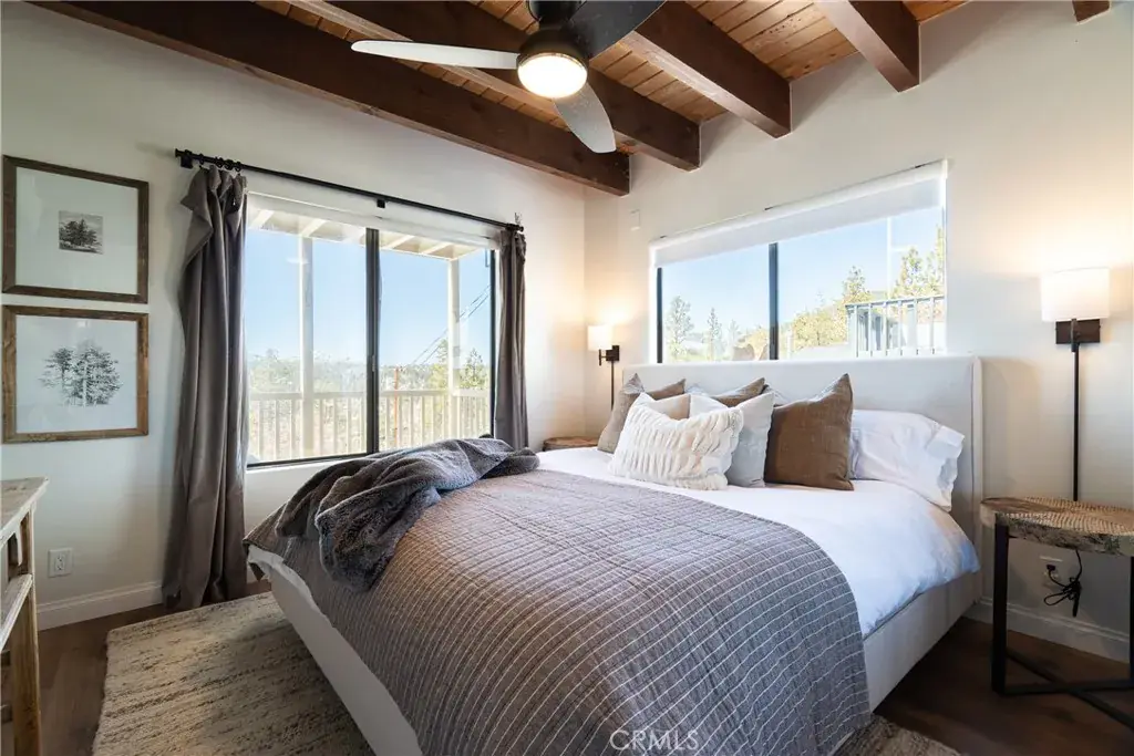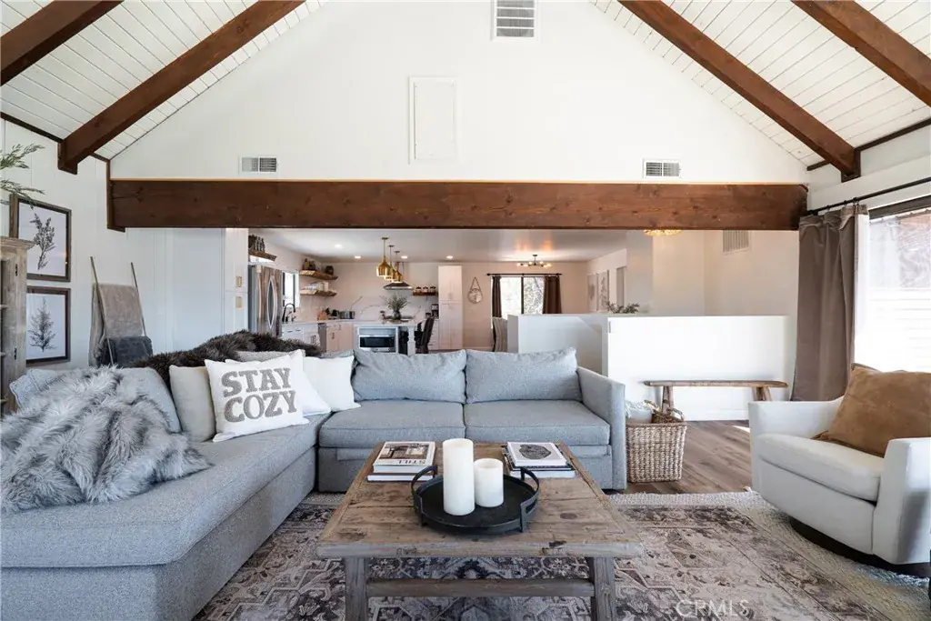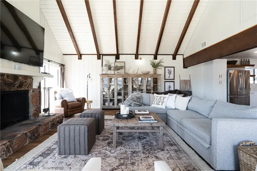 Breathtaking views in every direction, plus approximately $140K in annual gross short-term rental revenue! Positioned high above the valley, this beautifully remodeled mountain home feels like it’s sitting on top of the world, offering sweeping panoramic vistas of Big Bear Lake, the valley below, forested ridgelines, surrounding mountains, ski slopes, and San Gorgonio. From sunrise to golden-hour sunsets, the expansive skyline creates an unforgettable backdrop ideal for stargazing and four-season mountain enjoyment. Offering approximately 2,592 square feet of living space, the home features 4 bedrooms and 4 bathrooms, designed for comfort, privacy, and flexibility. The upper level serves as the main living space, showcasing vaulted ceilings, abundant natural light, and an open-concept layout that seamlessly connects the living room, dining area, and kitchen. A stone fireplace anchors the living area, while large windows and direct deck access keep the dramatic views front and center. The expansive upper deck is ideal for entertaining, relaxing, or simply taking in the scenery. A dedicated office nook and a private primary bedroom complete this level. The lower level is equally impressive, offering three additional bedrooms, multiple bathrooms, and outstanding recreation spaces. The spacious garage has functioned as a game room and entertainment hub, while a charming under-stair nook provides flexible bonus space. The layout allows for excellent separation between gathering areas and sleeping quarters. Outdoor living is a highlight, with multiple decks, a hot tub, fire pit, and grilling areas designed to enjoy all four seasons. Located on a quiet street approximately 15 minutes from Snow Summit and Big Bear Lake Village, with convenient access to dining, shopping, the airport, and main roadways, this home delivers an elevated Big Bear lifestyle! Designed to be enjoyed year-round, it offers space, scenery, and flexibility for unforgettable Big Bear experiences.