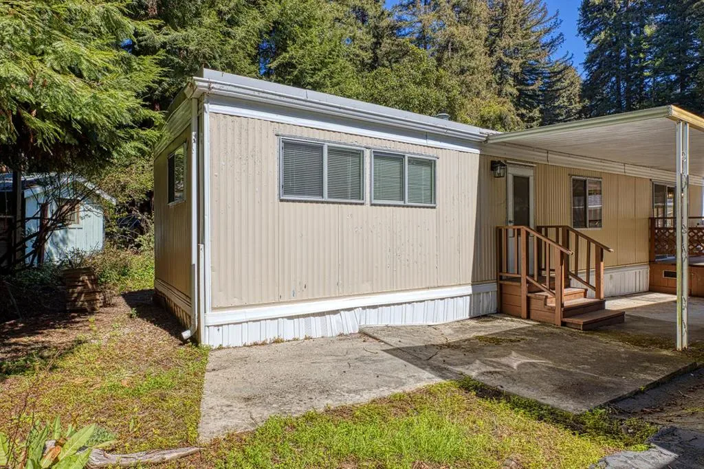 Cutie situated in a special park under the Redwoods in sweet Felton! Tucked away from the hustle and bustle of life sits this home waiting for its new owner! This small park is family owned, and is very affordable, listen to the birds, the breeze in the tree’s and enjoy life. This home has lots of natural light. The kitchen is a good size to cook up a meal with a passthrough so you can visit with friends and family in the good sized living room. The slider off the living room gives you access to the the deck that is perfect for some outdoor living space to read a book, relax, and enjoy the beauty that surrounds this sweet home and park. The bedroom is at the back of the home with plenty of storage. This is an affordable way to live in Santa Cruz County under the Redwoods, not far from the sweet town of Felton that has restaurants, grocery, and all conveniences that you need. Come take a look!