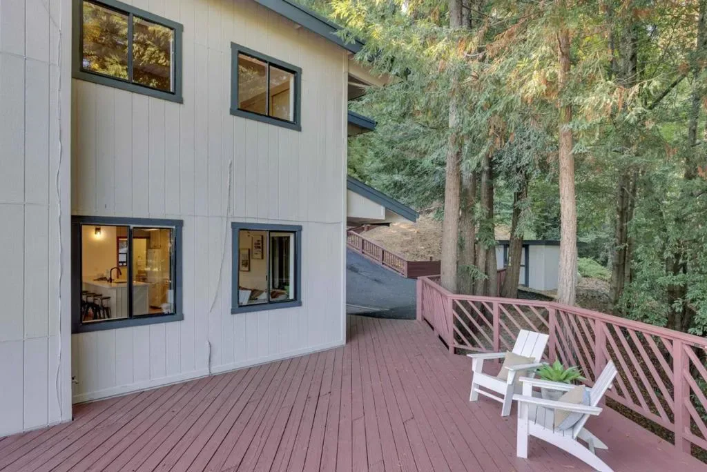 Price improvement!! It’s rare to find a lot this size (98,838 SqFt) with lots of usable land. There’s enough space to add an ADU up to 1200sqft or split the lot and build another home (Buyer to verify). This unique location near the end of West Dr. offers an extra level of privacy, gets lots of sunlight and boasts spectacular views of the valley. This lovely 2b/1.5ba gem has been elegantly updated inside and out, with almost $80k invested. The expansive wrap around deck and 2nd level balcony are perfect for entertaining or relaxing. The kitchen features new quartz countertops, new sink, new microwave, new gas range, dishwasher, and new refrigerator. The family room is seamlessly integrated with the dining area, creating an inviting space for gatherings, and features a fireplace that adds warmth & charm. Upstairs: both bedrooms, a full bathroom, washer/dryer, and the private jetted tub room with views. You’ll feel like you’re in your own private spa resort! Theres plenty of storage in the sheds, and lots of room under the deck. City water! Upgrades include: Fresh paint, refinished hardwood floors, brand new carpet, new light fixtures, repaved driveway, Tesla wall battery, and much more. 1.5 miles to Loch Lomond. 12 minutes to Safeway, 20 min to Santa Cruz, and 45 min to Los Gatos