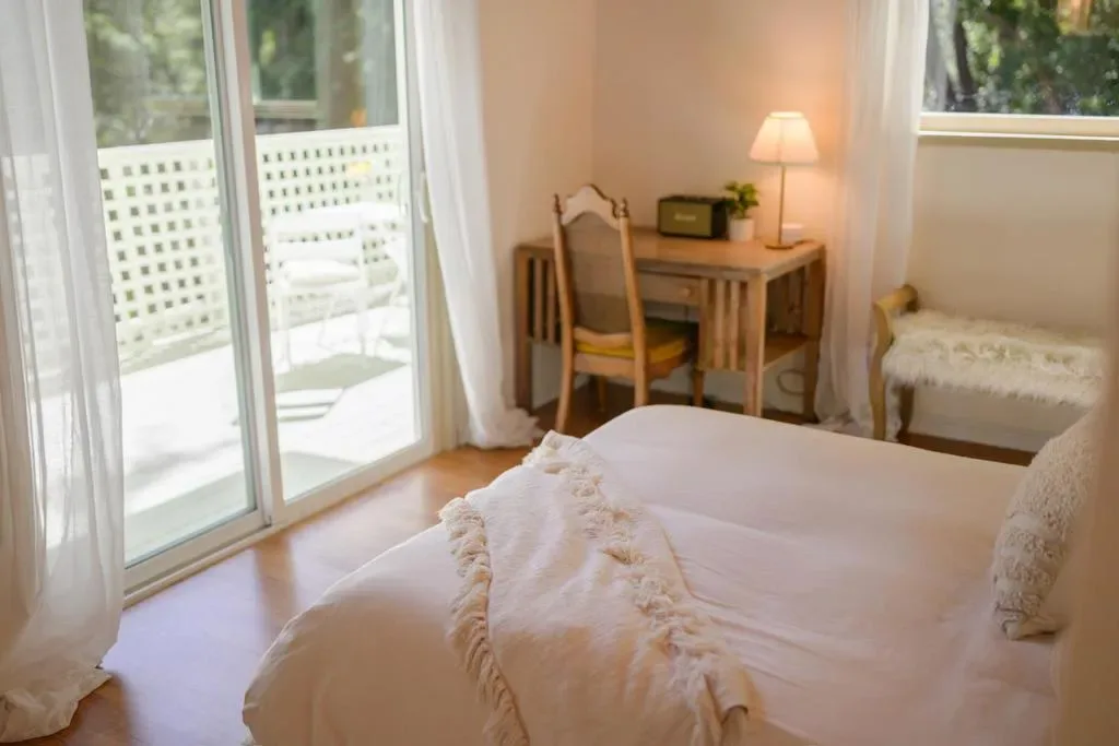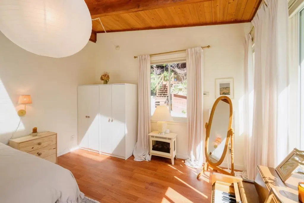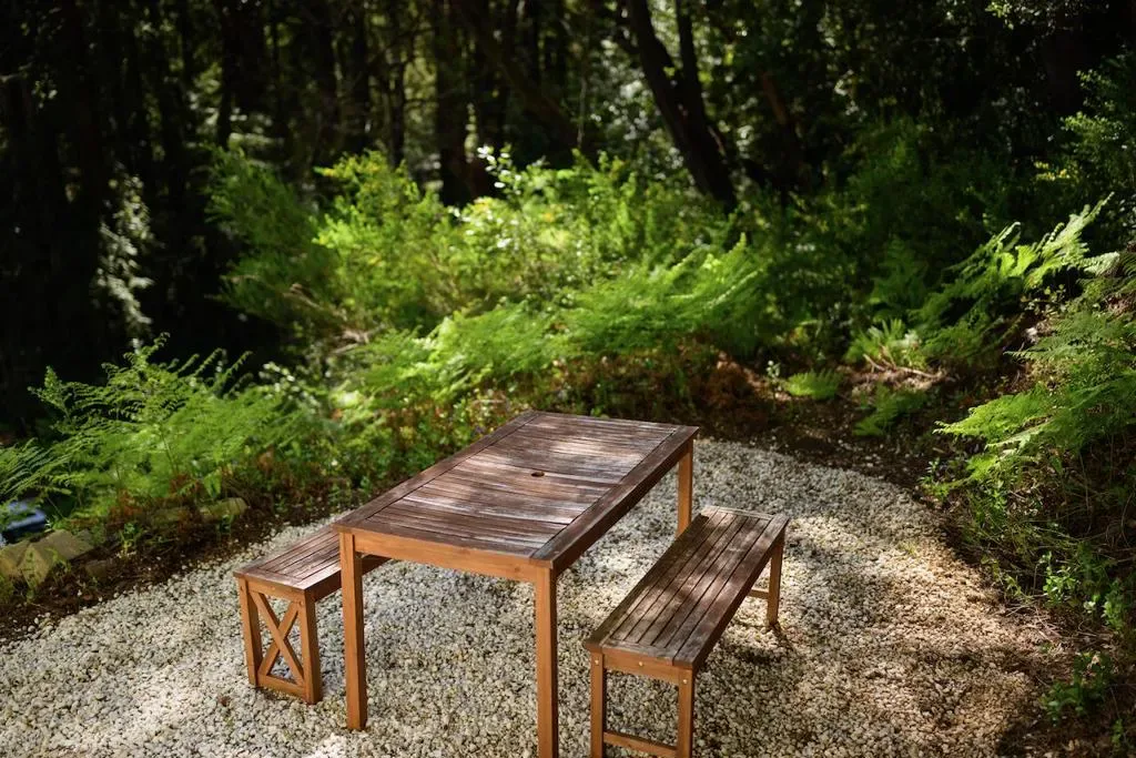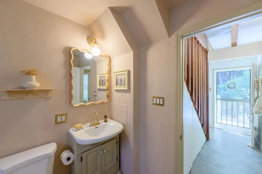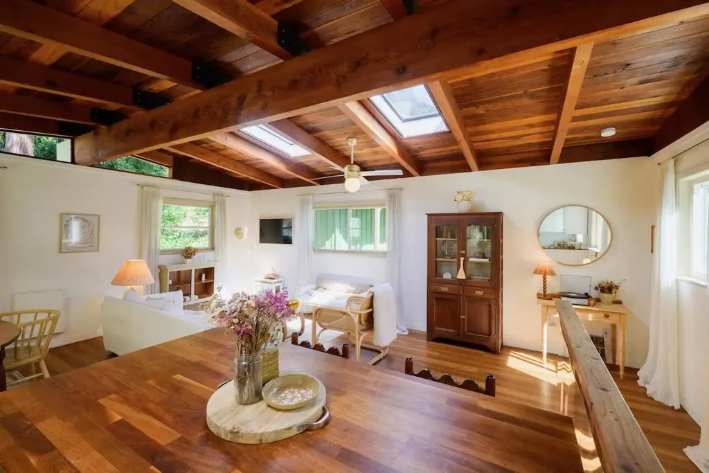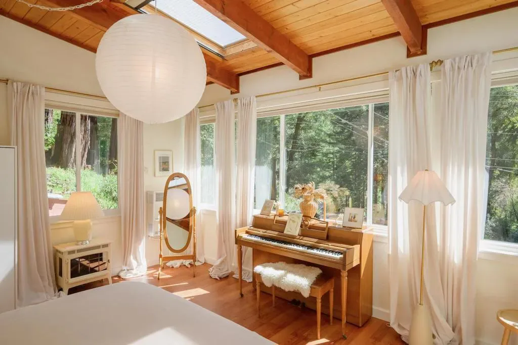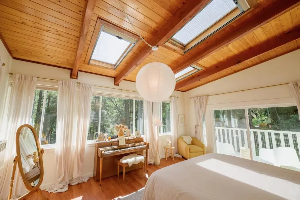 Beautifully updated home with separate ADU on a large lot featuring a peaceful forest setting and seasonal creek. The main home offers a desirable reverse floor plan with the great room and kitchen located upstairs, while three bedrooms and a full bath are on the lower level. The spacious primary bedroom is filled with natural light from multiple windows and skylights and features stunning vaulted wood-beam ceilings and private access to the front porch. The inviting kitchen offers beautiful wood-block countertops and abundant white cabinetry and flows seamlessly into the living and dining areas. Dramatic vaulted ceilings and expansive windows bring in natural light and showcase the surrounding nature. Step out onto the balcony deck for al fresco dining among the trees. A large storage and laundry room is conveniently located between the main house and ADU. The detached ADU offers a full kitchen, dining area, separate bedroom/living space, and full bathroom – perfect for guests, extended family, or a home office. Reverse osmosis water system. Multiple decks and patios, hot tub, outdoor shower, and sunny lawn areas create wonderful outdoor living spaces. Minutes to downtown Felton, hiking trails, and the beaches of Santa Cruz.