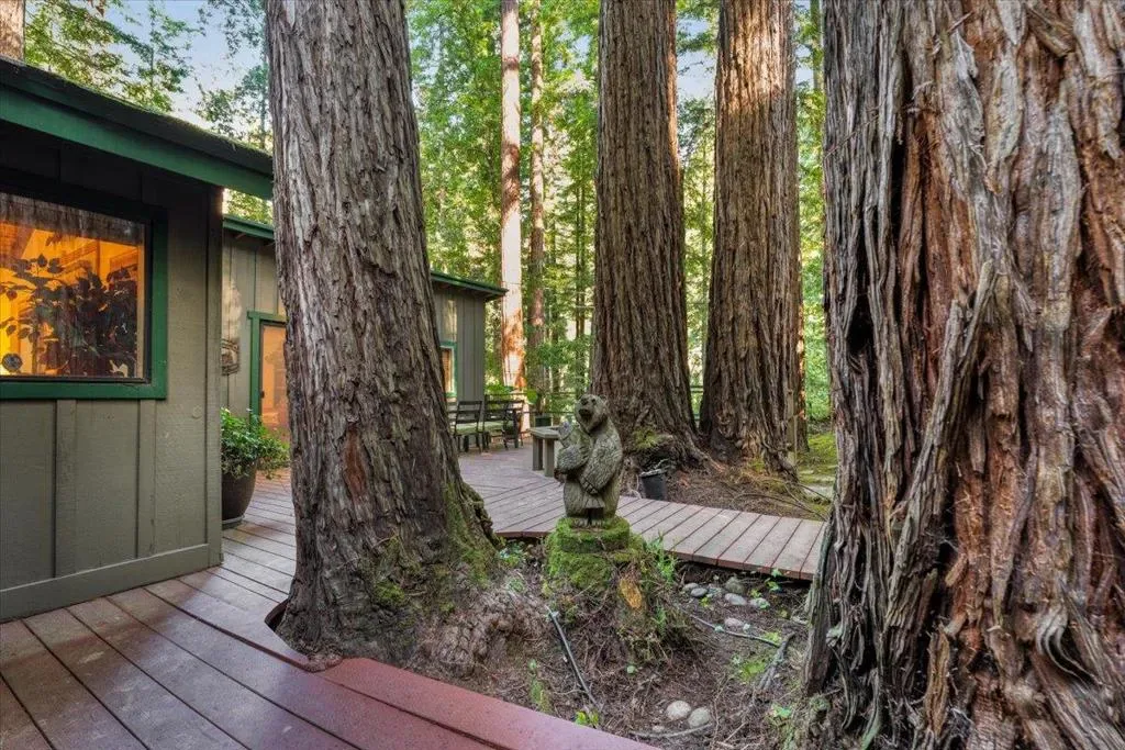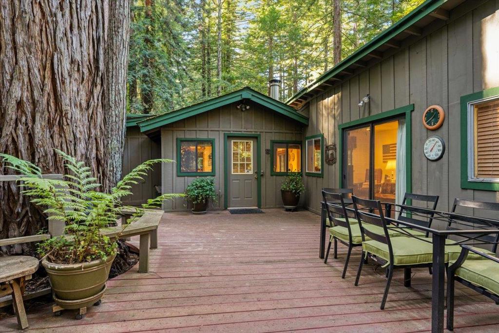 This sweet home is bursting with mountain charm! Tucked within the desirable residential community of Forest Lakes, this thoughtfully constructed two-bedroom, two-bathroom home is surrounded by majestic redwood trees and located near a private, seasonal recreational pool. The home features pine wood flooring, two well-appointed bedrooms each with en suite bathrooms, and a private deck off the primary bedroom. An office nook off the living room provides flexible workspace, while a functional wood-burning stove adds warmth and ambiance to the living area. The seller would like to sell fully furnished!