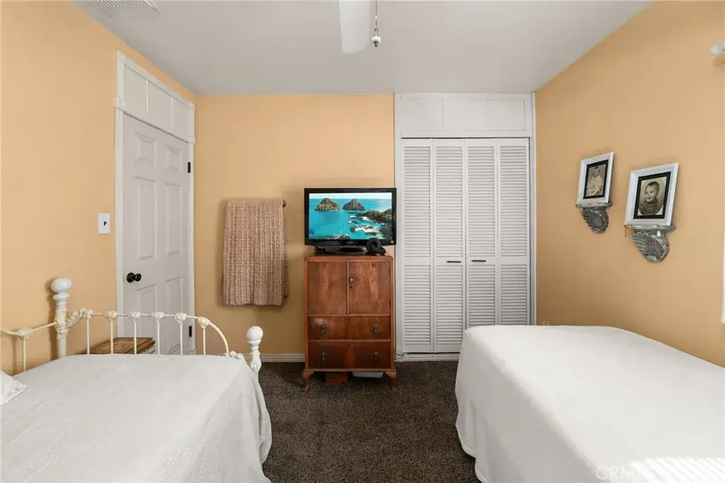 The existing home is approximately 1,100 square feet and features 2 bedrooms and 1 bath. Inside you’ll find tile flooring throughout and carpeting the living room and bedrooms, family room with fireplace, and stackable laundry in kitchen closet. The oversized two-car garage offers additional storage or workspace potential.