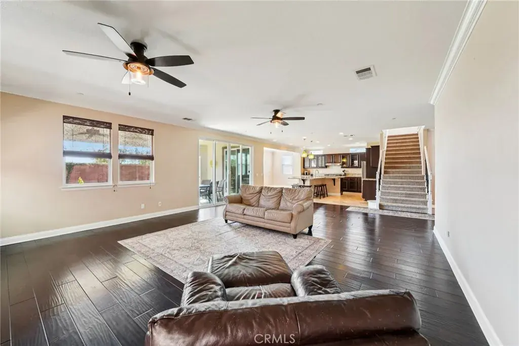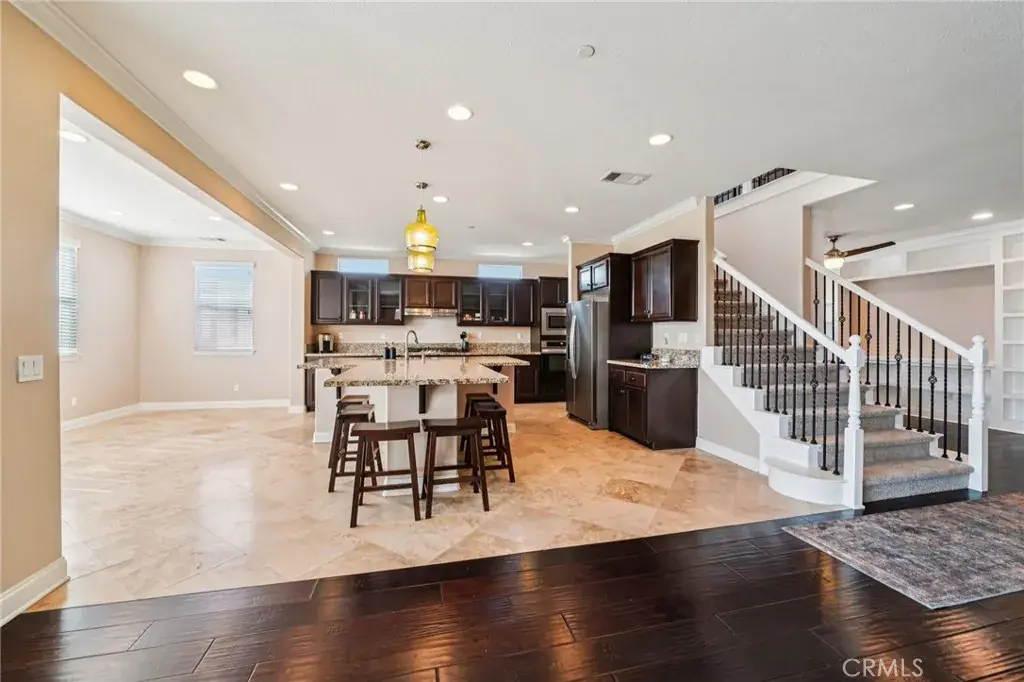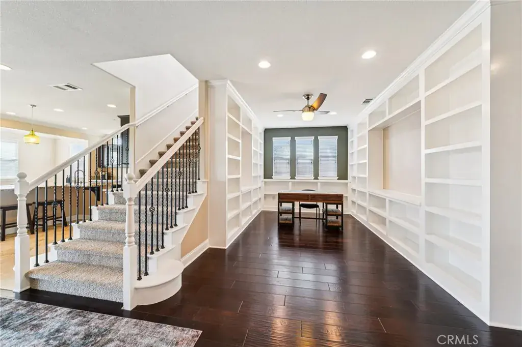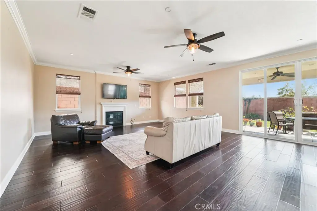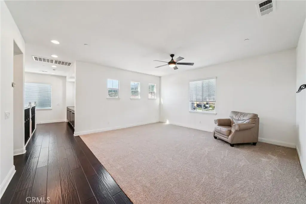 Gorgeous 4-bedroom, 3.5-bath home with a spacious bonus loft – ready to be yours! Built in 2012, this beautifully maintained property offers fantastic curb appeal with well-manicured landscaping, sits on a desirable corner lot, and best of all – no HOA. Step inside to an open and airy floor plan filled with natural light, elegant crown molding, and recessed lighting throughout. The formal entry leads to a versatile office with built-in shelving, which can easily serve as a formal dining room. The kitchen is a chef’s dream, featuring a large center island with granite countertops, bar seating, abundant wood cabinetry, stainless steel appliances, including the refrigerator, and a generous walk-in pantry. It opens to the breakfast nook and a large family room complete with a cozy fireplace and sliding glass door to the backyard. The main level also includes a bedroom, a full bathroom, and a convenient half bath for guests. Upstairs, you’ll find a spacious bonus loft ideal for a game room, media room, or relaxing movie nights. The impressive primary suite offers a large walk-in closet and a private, spa-like ensuite with dual sink vanity, a soaking tub, and a separate shower. The secondary bedrooms share a Jack-and-Jill bathroom with dual sink vanity, and a the laundry room, which includes the washer and dryer, completes the second floor of the home. Enjoy the private backyard featuring a covered patio, with included patio furniture, and lush green grass – perfect for outdoor gatherings or quiet evenings at home! This home is conveniently located near Coyote Canyon Park, as well as schools, shopping, dining, hiking and biking trails, and offers easy access to the 15 Freeway, this home truly has it all! Schedule your private tour today!