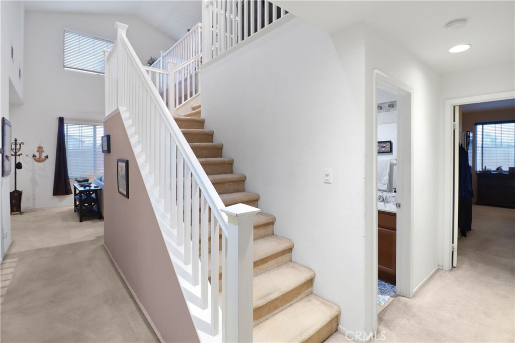 Welcome to this beautifully maintained home tucked away in a quiet cul-de-sac in the desirable Rancho Fontana neighborhood. Offering 2,093 sq ft of living space, this 4-bedroom, 3-bath residence sits on a landscaped corner lot and features a highly functional layout with the primary suite and two additional bedrooms on the main level. The spacious primary suite includes a walk-in closet, soaking tub, and separate shower. Upstairs is ideal for multigenerational living, featuring a private bedroom, full bath, and an oversized loft perfect for a second living area, office, or retreat. The low-maintenance backyard with a gazebo is ready for your personal touch. Additional highlights include solar panels, a 2-car garage with EV charging port, no HOA, and convenient access to parks, shopping, and the 210 & 15 freeways.
