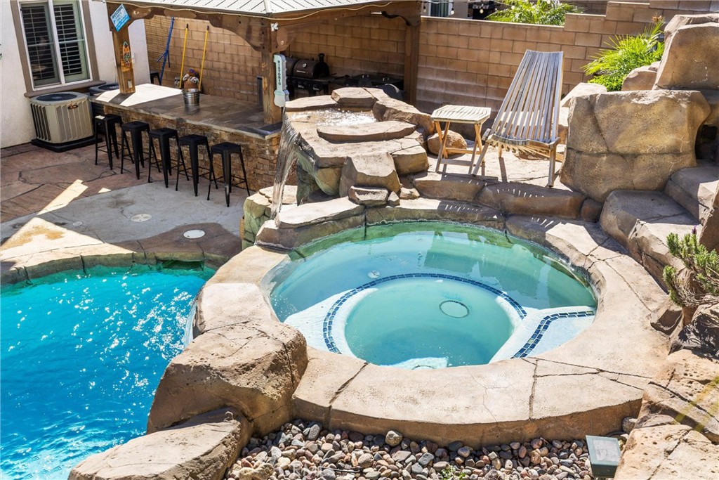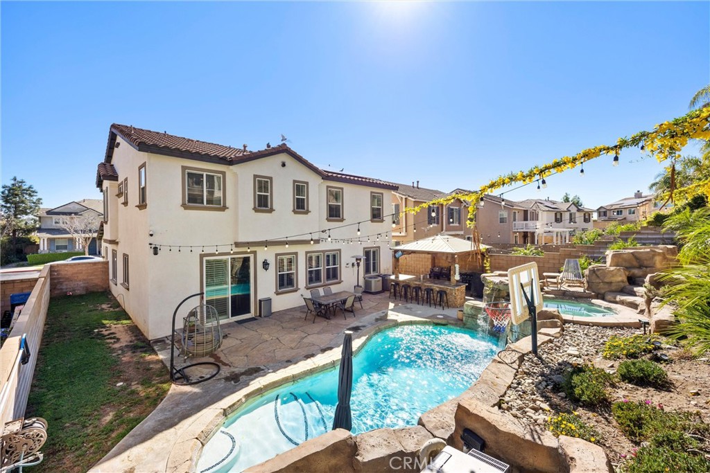 Two story POOL home located in the Citrus Heights gated community of North Fontana. Open floorplan with open living and family room and kitchen with tile floorings ! Custom Built shutters through family and living room . The downstairs features a large open kitchen with center Island, coffee nook and pantry. One bedroom and 3/4 bath downstairs. Upstairs, you will find 3 large guest bedrooms . Guest bath with dual sink vanity and tile flooring . Great size laundry room located upstairs. Great over-sized Master Suite and spa-like ensuite with separate tub/shower & large walk-in closet. Resort looking Oasis with water slide and Build in Island with natural gas and over sized Gazebo with two built in refrigerators . Firepit with natural gas . SOLAR PANELS to keep electricity bill to a minimal even during hot summer days .240 V EV car charger for your convenience already installed in the garage .
