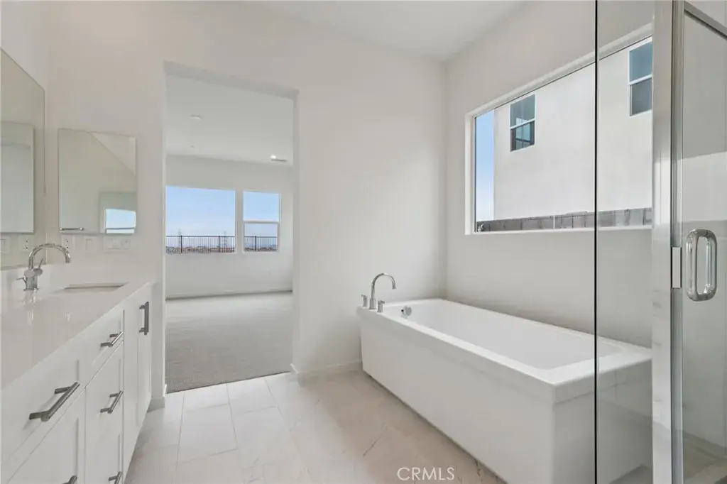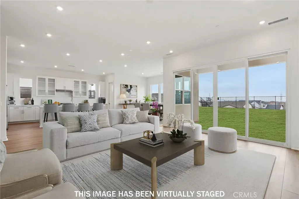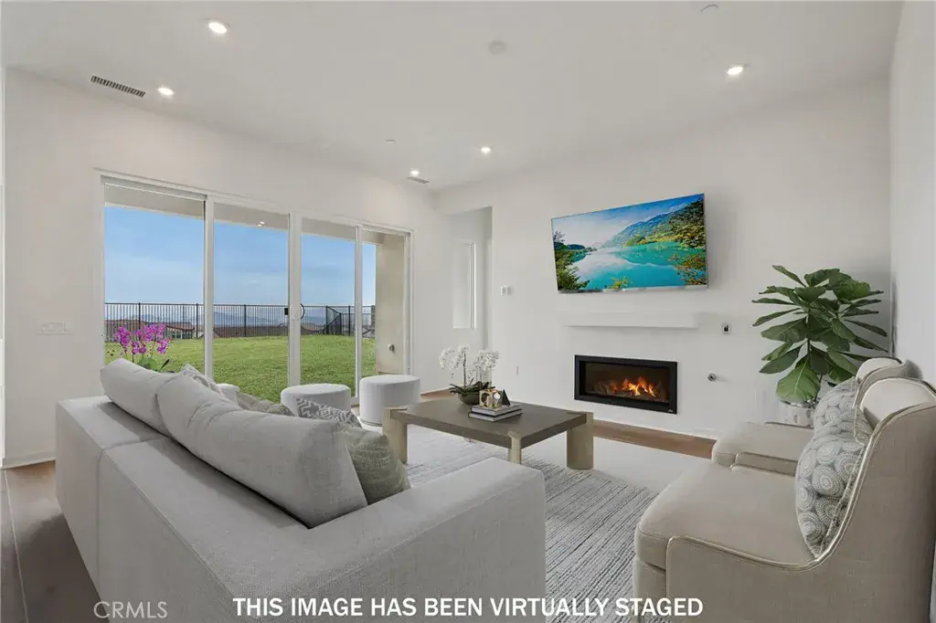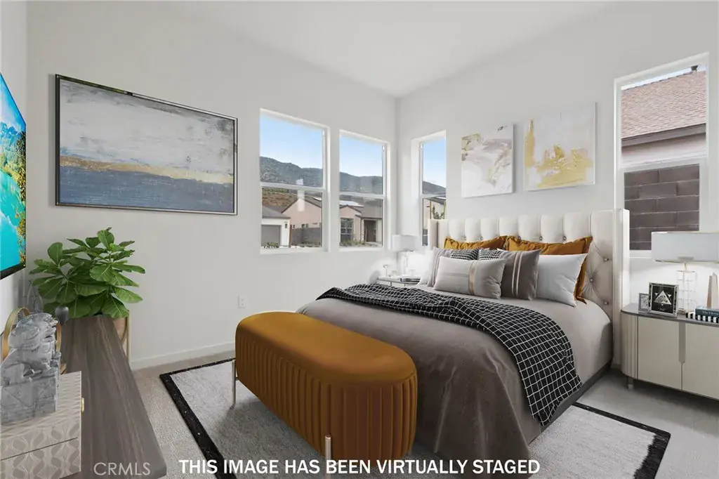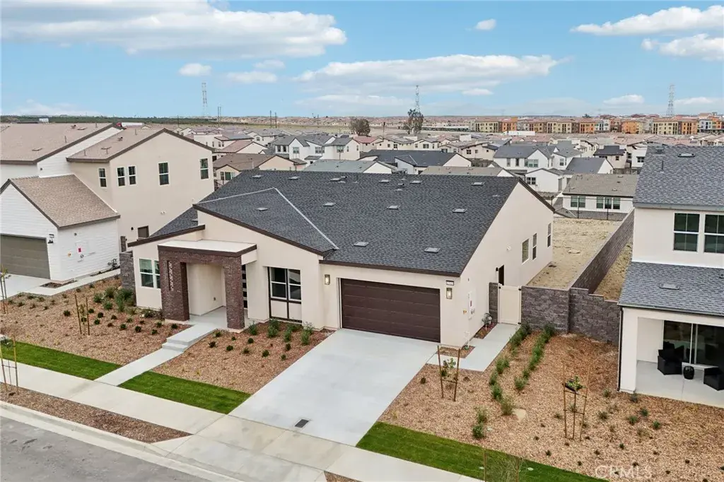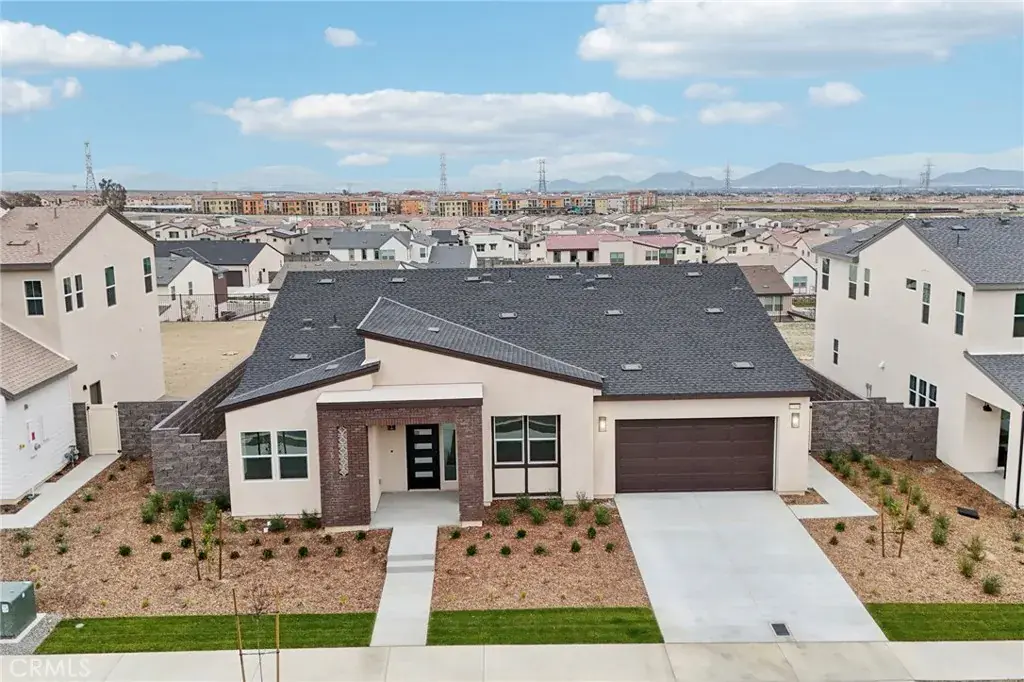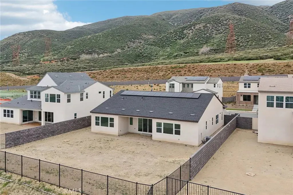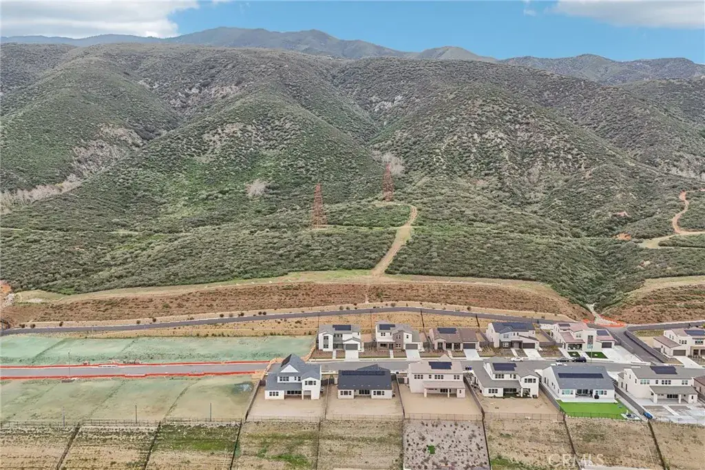 This single story was designed with modernism in mind and you see it before you even get out of the car! Offering 2,375 SqFt of living space with 4 bedrooms and 3 bathrooms the home rests on A QUARTER ACRE FLAT LOT WITH VIEWS! Open and airy with high ceilings and recessed lighting to balance the warm laminate wood flooring throughout the main living spaces. Down the hall is the fireplace-warmed family room across from the kitchen complete with Samsung stainless steel appliances (REFRIGERATOR INCLUDED!), Moen faucet, soft-close white shaker cabinetry, quartz counters and a spacious pantry. The conveniently located laundry room COMES WITH A WASHER AND DRYER as well as a utility sink adding true everyday practicality. The primary suite fills with natural light and is anchored by a spa-like bath featuring a large Roman soaking tub and a walk-in shower. The backyard is a blank canvas with forever views and ready for your imagination — jacuzzi, garden, outdoor kitchen? The exclusive community of Narra Hills is resort-style living — a gated, master-planned community set on over 100 acres and backing up to the San Bernardino National Forest, offering sweeping valley and mountain views. At the heart of the community is a resort-caliber rec center: sparkling pool, relaxing cabanas, and a great room with a catering kitchen perfect for gatherings. You can break a sweat in the fitness studio or on the pickleball courts, roast s’mores around a fire-pit lounge, or host a barbecue in the shaded pavilions. There are playgrounds for the kids and even dog parks for your furry family members! Living here feels like an elevated retreat, but with the convenience of being just minutes from shopping, dining, and outdoor recreation.