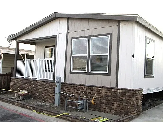 Welcome to Capri Mobile Estates, a desirable all-age community in Fontana. This brand-new 2025 Clayton Homes manufactured home offers approximately 1,408 sq. ft. of thoughtfully designed living space with 3 bedrooms and 2 bathrooms. Enter through the covered front porch into a spacious, light-filled living room featuring multiple windows and an open-concept layout ideal for everyday living and entertaining. The adjoining kitchen is equipped with stainless steel appliances, including an oven/range, dishwasher, built-in microwave, and refrigerator. Ample counter space and abundant cabinetry provide both functionality and style. The dining area and laundry room is conveniently located just off the kitchen. The well-designed floor plan offers two secondary bedrooms that share a full bathroom with a shower/tub combination. The private primary suite features a double vanity and a walk-in shower, creating a comfortable retreat. Additional highlights include central heating and air conditioning, modern finishes throughout, and an attached covered carport. With low space rent of $1,060 per month, this is an exceptional opportunity to own a brand-new home in Southern California at an affordable price.