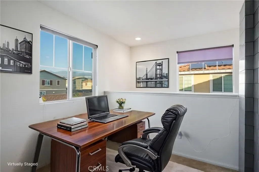 Welcome to this bright and thoughtfully designed home offering modern features and a functional layout. The open-concept main level seamlessly connects the kitchen, living, and dining areas—perfect for both everyday living and entertaining. Tile flooring runs throughout the main level, while plush carpeting adds comfort upstairs. The kitchen and living spaces are filled with natural light and feature a sliding glass door that opens to the backyard—currently a blank canvas ready for your personal touch. Additional main-level highlights include direct access to the attached 2-car garage. This home is equipped with valuable upgrades including including owned solar, a Tesla backup battery, reverse osmosis system, and water softener—providing efficiency, convenience, and peace of mind. Upstairs, a versatile loft has been enclosed with a door for added privacy, making it ideal as a home office, media room, or additional living space. The spacious primary suite offers a walk-in closet and an en-suite bathroom complete with dual sinks, a soaking tub, and a separate shower. Three additional bedrooms share a full bathroom, and a convenient upstairs laundry room completes the second level. This home combines comfort, flexibility, and modern amenities in a desirable layout ready to fit your lifestyle.