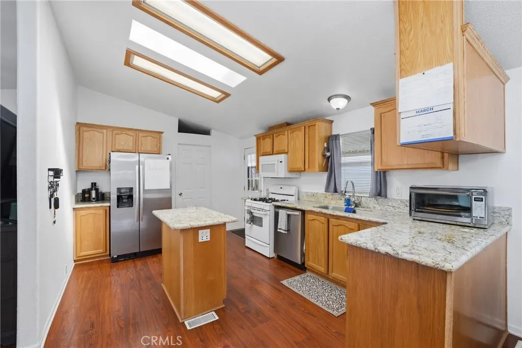 Welcome to this charming manufactured home located in a well-maintained community, offering comfort, space, and an abundance of natural light v . Inside, you’ll find beautiful vaulted ceilings and skylights that fill the home with sunshine, creating a bright and airy atmosphere throughout the main living areas.