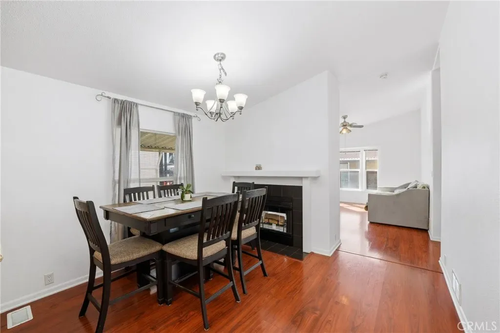 The cozy two-way fireplace serves as a centerpiece between the living room and dining area, adding warmth and character to both spaces. The spacious primary bedroom features a private en-suite bathroom complete with dual sinks, a relaxing soaking tub, and a separate stand-up shower.