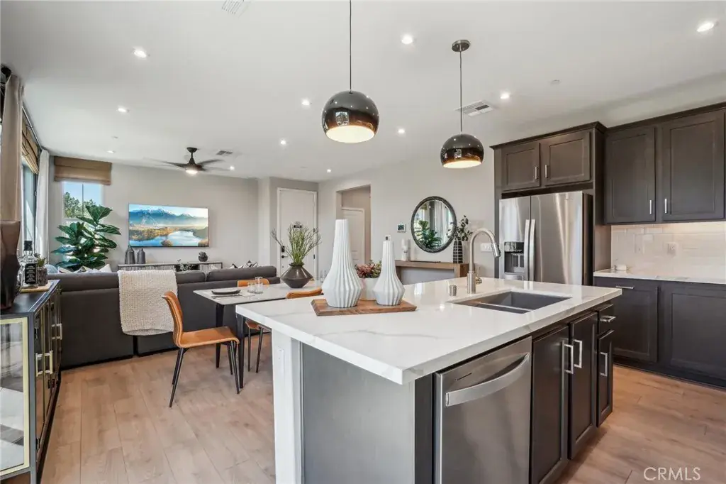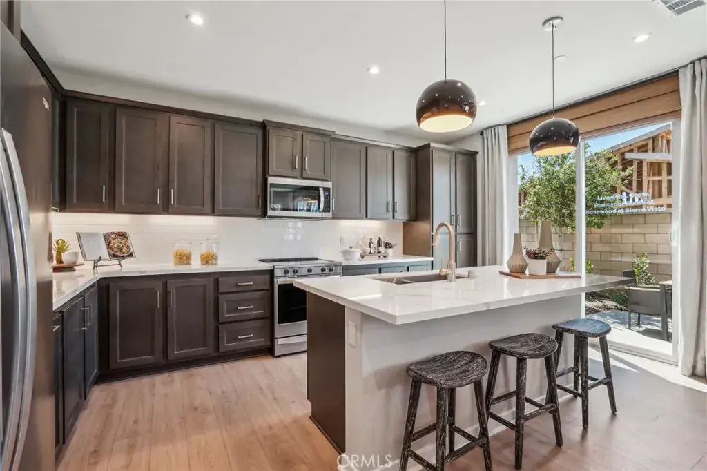 NEW CONSTRUCTION – SINGLE-FAMILY HOMES – FORMER MODEL HOME! Welcome to Rosewood at Sierra Vista – a collection of beautiful, single-family, detached, two-story homes with floor plans ranging from 1650 sq. ft to 1914 sq. ft in a gated community in Fontana, featuring a community pool and play lot. DON’T WAIT TO OWN THE FORMER MODEL HOME RESIDENCE 1805 with interior design decor upgrades, landscaped yard, 4 bedrooms, 2.5 baths and a spacious loft on the second floor! Open the front door and step into an airy, open-concept Great Room, Dining and Kitchen space that lends to endless entertaining and enjoyment. The gourmet Kitchen features quartz counter tops, premier stainless-steel appliances, stainless-steel sink and beautiful island for extra seating and meal prep, and tons of cabinet and countertop space. On the second level, you’re greeted by a spacious loft, perfect for lounging, study or play, and three, additional, large bedrooms and secondary bath with dual sinks. The expansive and luxurious Primary Suite features a large Primary Bathroom complete with dual-sink vanity with stone counters, walk-in shower and extra-large walk-in closet. The nicely-sized back yard is perfect for relaxing and entertaining and is right sized for easy maintenance and enjoyment. Among the features and finishes, homeowners will appreciate the unparalleled peace of mind in owning America’s Smart Home, Home is Connected. The Home is Connected package offers devices all conveniently controlled through one application to stay connected to home around the clock.