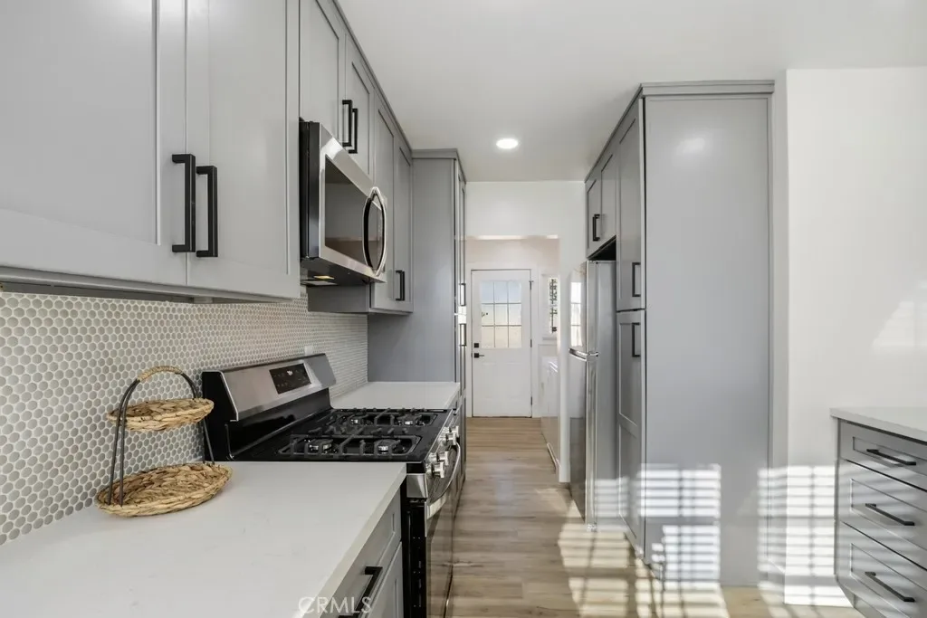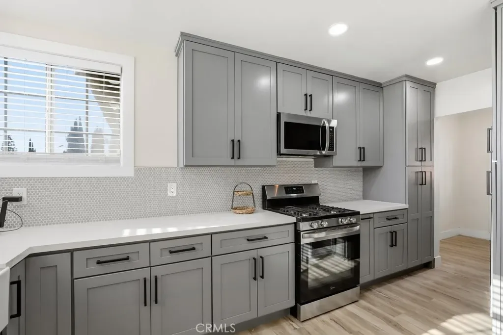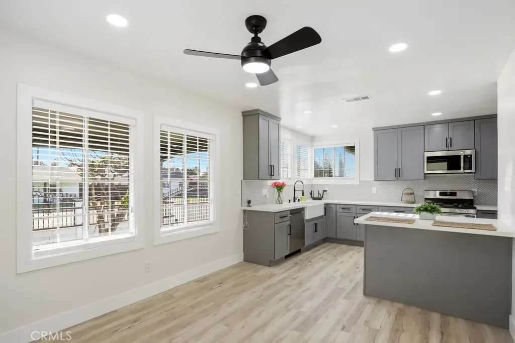 Welcome to this beautifully remodeled 2-bedroom, 2-bathroom single-family home in the heart of Fontana—completely move-in ready and designed with modern living in mind. This spacious residence features a fully updated kitchen with sleek gray shaker cabinets, elegant Quartz countertops, and brand-new appliances including a refrigerator, stove, dishwasher and microwave. Enjoy the fresh feel of new luxury vinyl plank (LVP) flooring throughout, along with an oversized living area that offers flexibility and can easily function as a third bedroom, office, or additional living space. A dedicated laundry room includes a brand-new washer and dryer for your convenience. Additional highlights include a 2-car garage, a private fenced backyard perfect for relaxing or entertaining, and a prime location close to shopping, schools, and entertainment. Schedule your private tour today—this one won’t last!